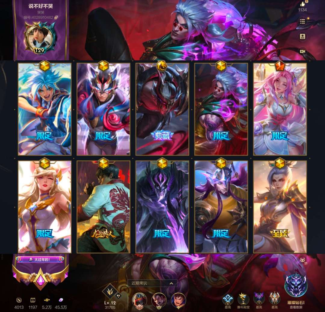 钻石可排位✨307皮✨典藏劫✨1典藏8神话32传说✨灰烬潘森✨至臻瑞文✨龙瞎✨光明哨兵/心之钢