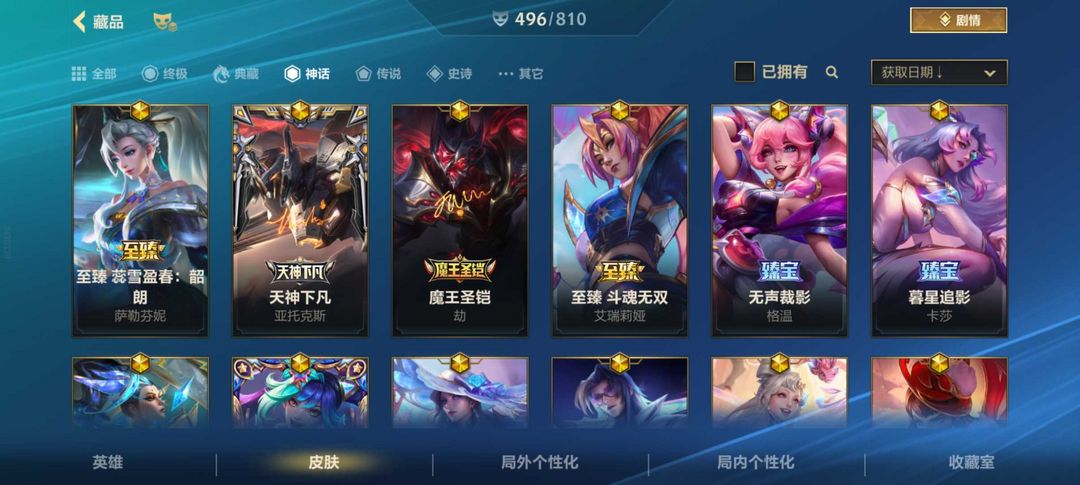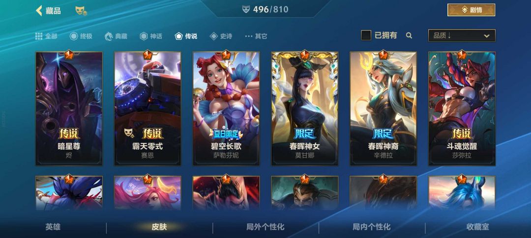 (496皮)14神话56传说 卡莎全皮 兰亭二代 水晶玫瑰 春辉众神 theshy剑魔faker劫