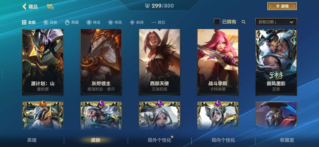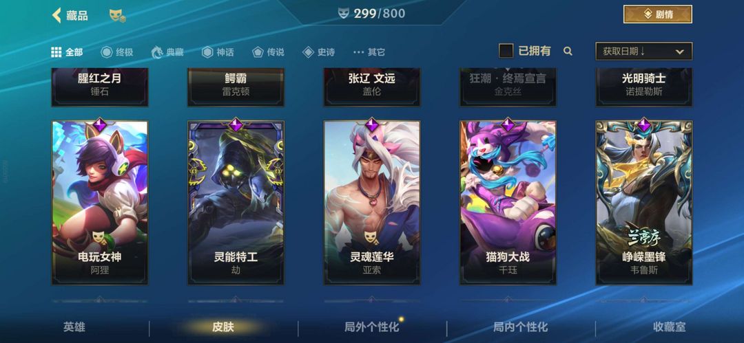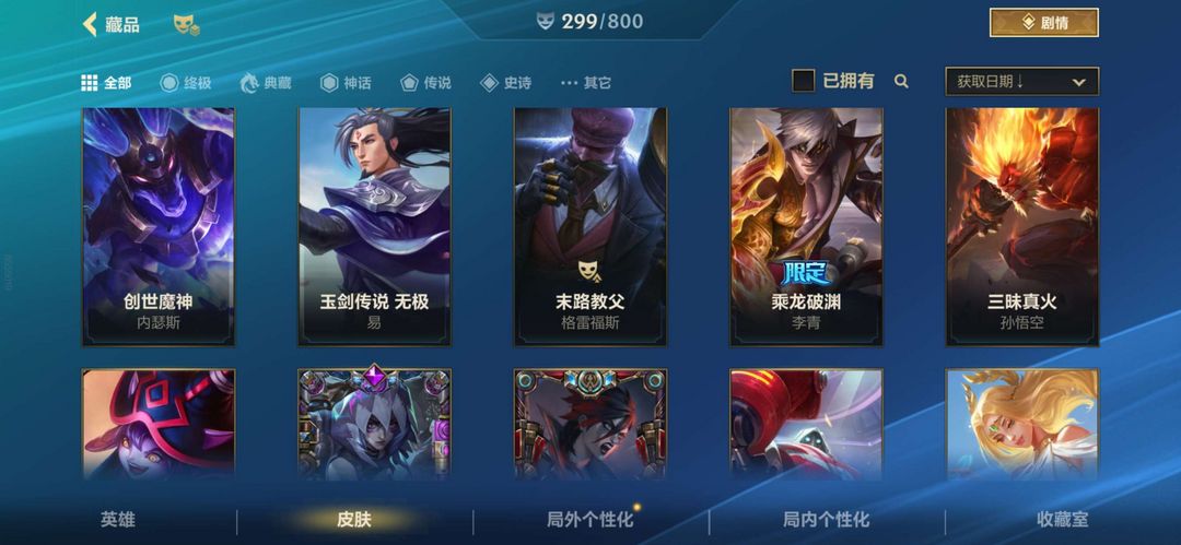 包含龙的传人李青、斩星魔剑等限定和稀有皮肤,还有K/DA阿卡丽、西部魔影卢锡安等高人气传说皮肤。
