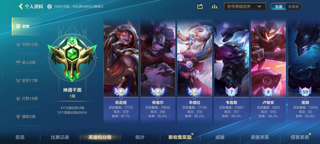 历史三国一,皮肤多,段位高,性价比十足,拿来装杯,体验皮肤都不错
