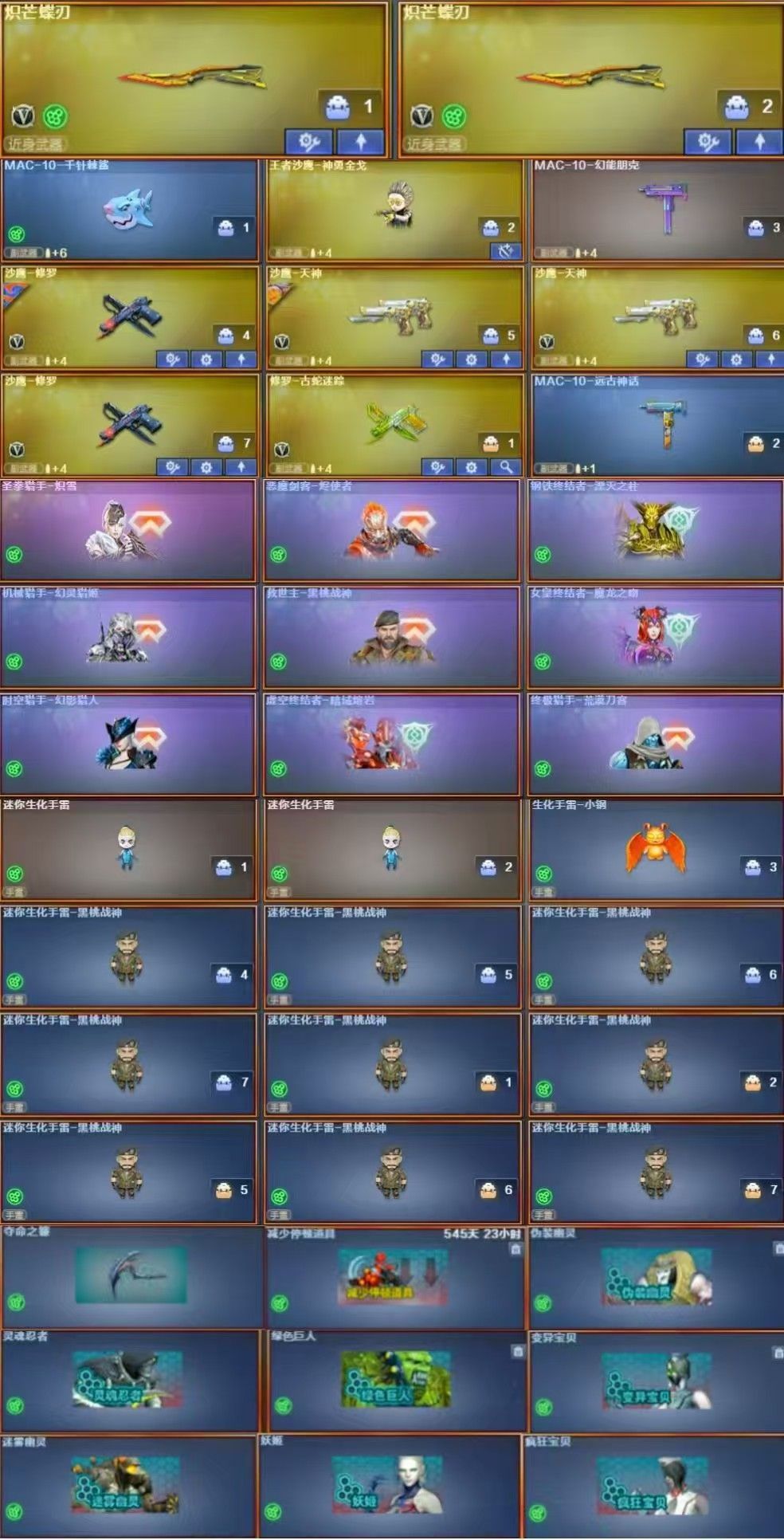 4把炽芒蝶刃炼狱泡泡象八面凌龙四防毒蝰术士枪娘斯太尔双清道夫毒蜂生化6盘6烈宙斯镇魔者女机械