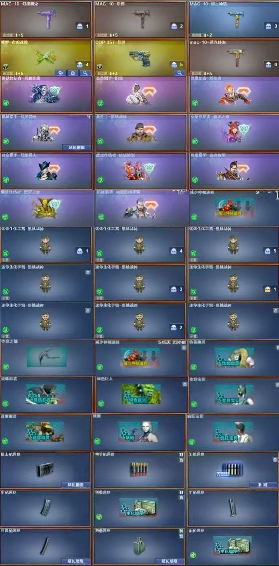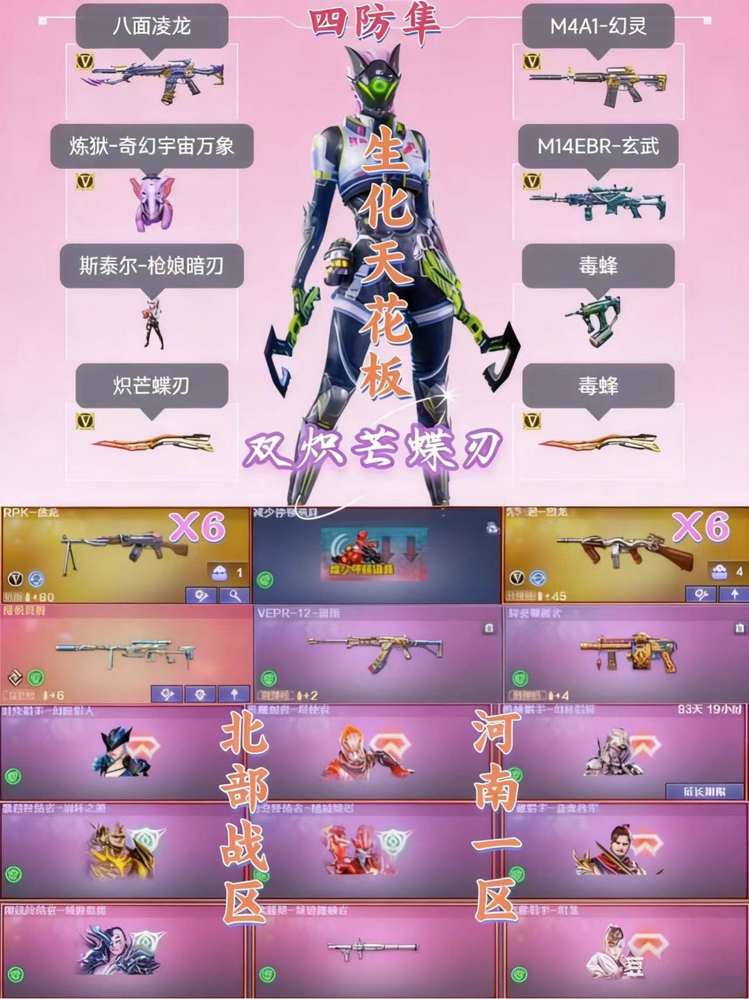 2把炽芒蝶刃四防隼炼狱泡泡象八面凌龙枪娘斯太尔毒蜂生化6盘6烈+异变镇魔者宙斯+传说灵眸幻灵
