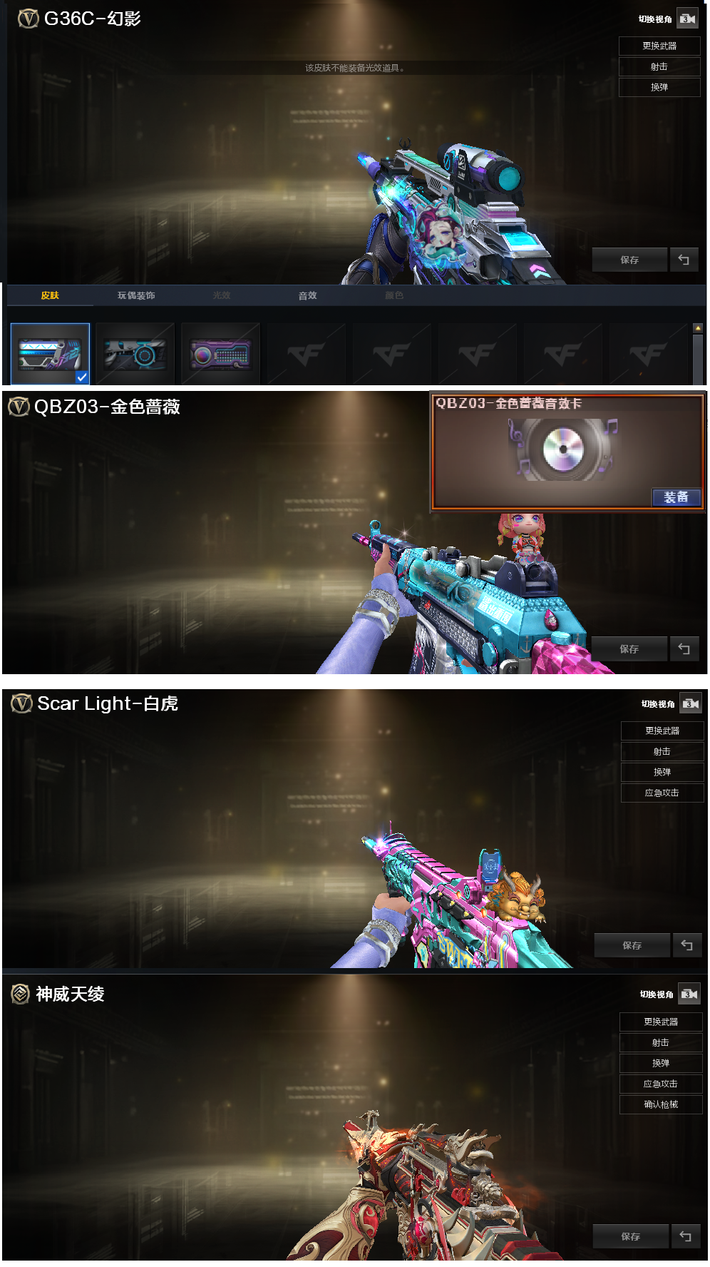 神威天绫|G36C幻影|2皮幻神音效【冠军】柯尔特电竞之星|裁决皮肤冠军薇白虎100V爆破全装