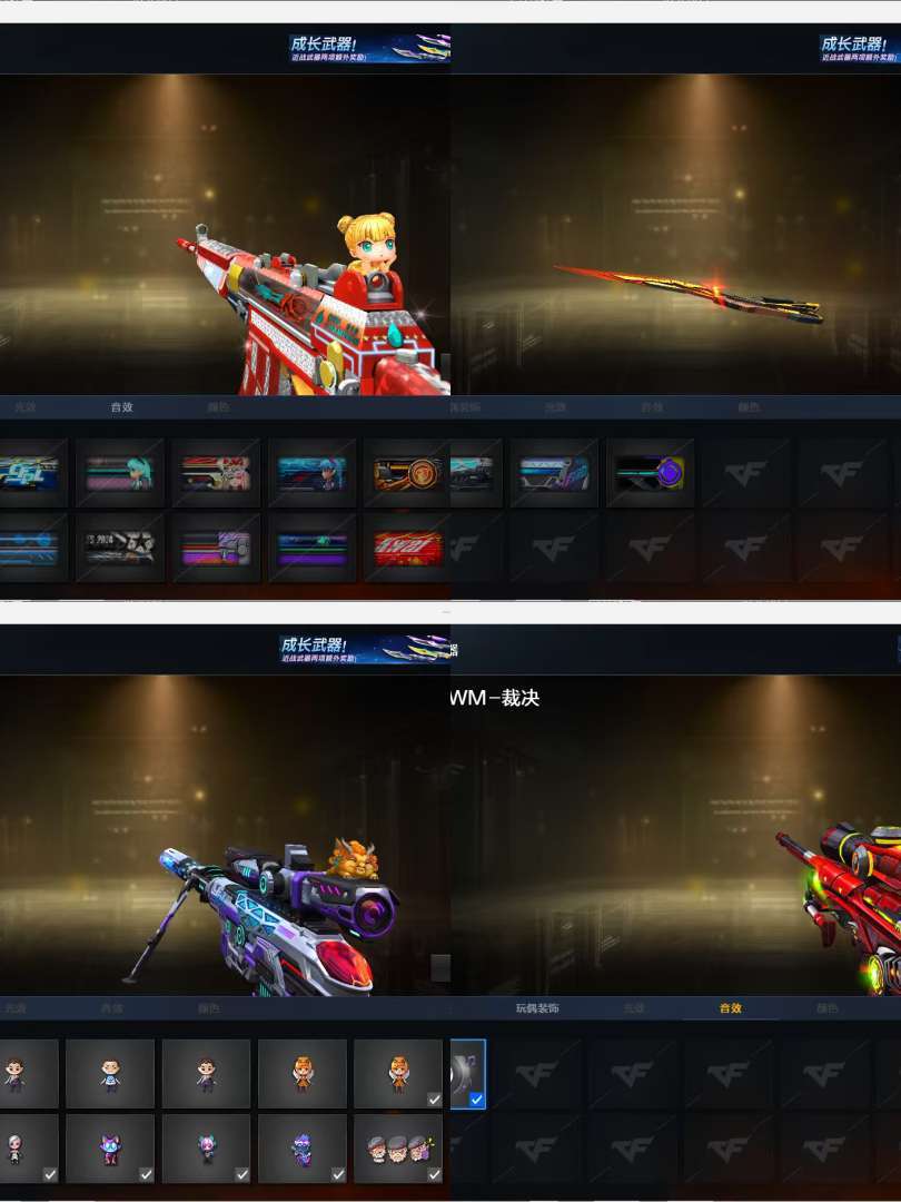 装备描述:裁决音效卡,赤芒蝶刃,极光音效卡,竞技荣光套装,usp雷暴,usp雷暴王者,qbz金色蔷薇,白虎