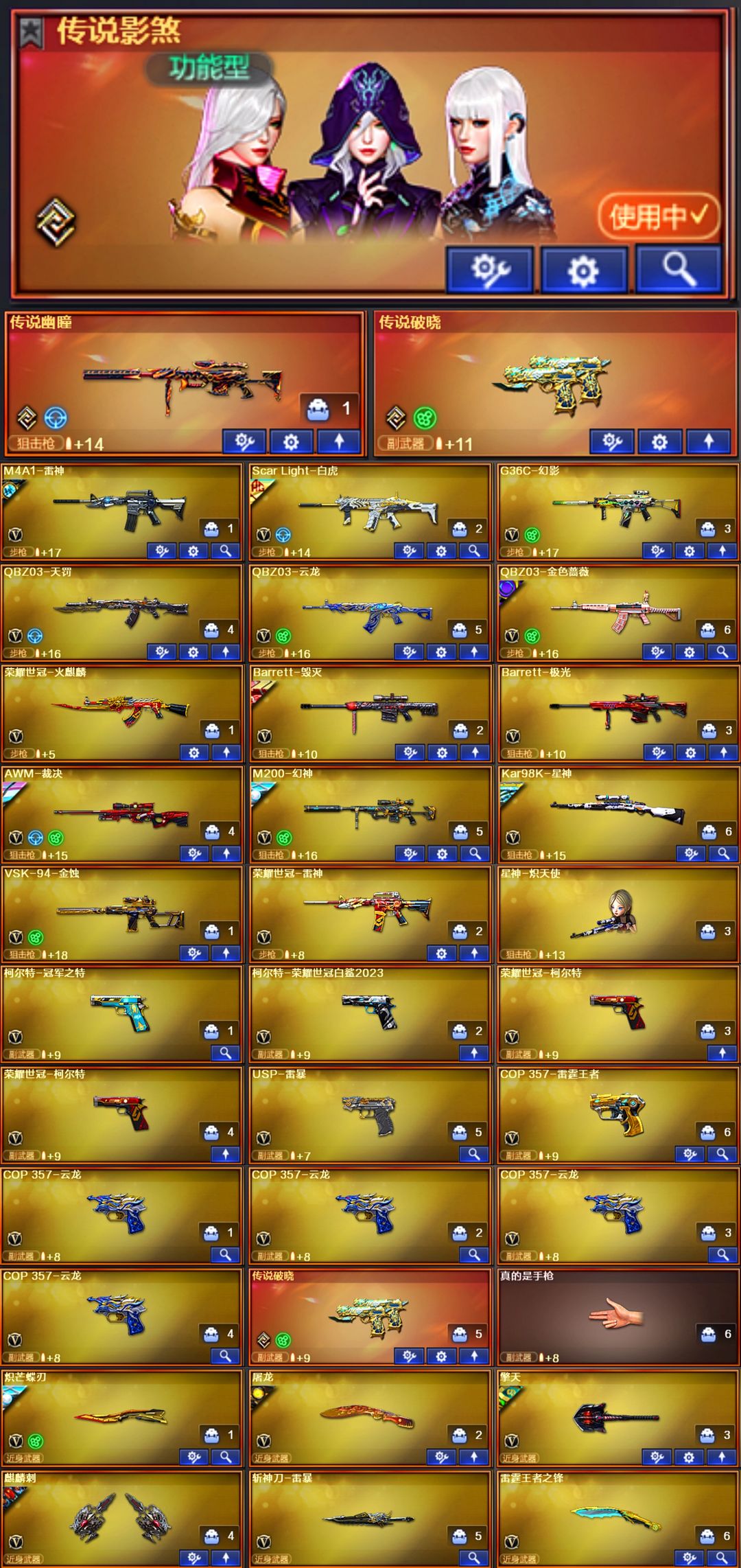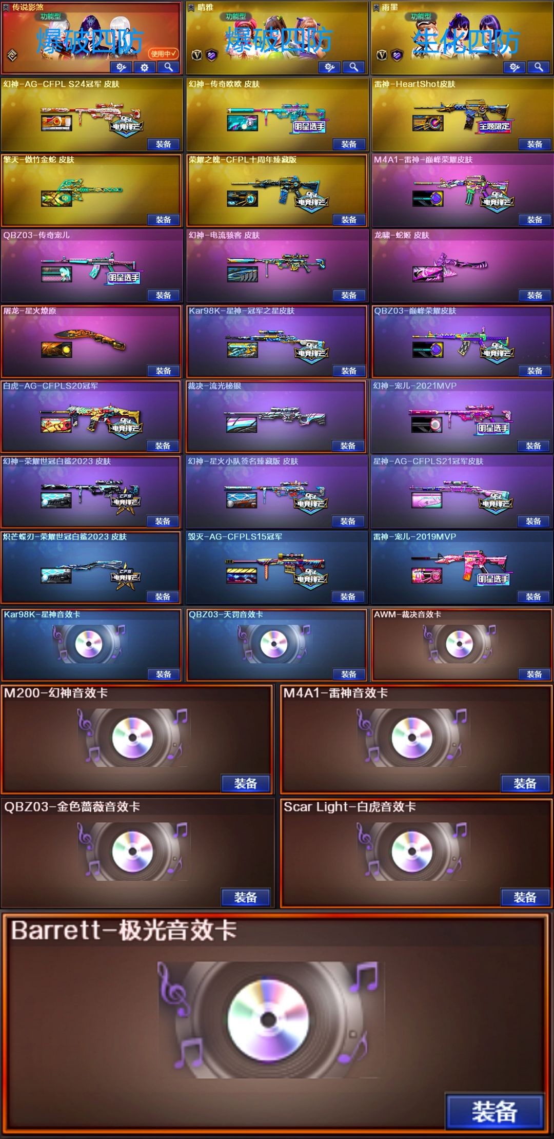 装备描述:北部北方大区-79V-【Lv.102.荣耀元帅】-【段位:新锐】 【稀有武器】:传说幽瞳/传说破晓/M200-幻神/Kar98K-星神/VSK-94-金蚀/G36C-幻影/ScarLight-白虎/QBZ03-天罚/USP-雷暴/COP357-云龙(4)/柯尔特-荣耀世冠白鲨2023/荣耀世冠-柯尔特(2)/COP357-雷霆王者-觉醒版/柯尔特-冠军之特/QBZ03-云龙/QBZ03-金色蔷薇/M4A1-雷神/荣耀世冠-火麒麟/荣耀世冠-雷神/Barrett-毁灭/Barrett-极光/AWM-裁决/加特林-炼狱/汤姆逊-烈龙(6)/炽芒蝶刃/斩神刀-雷暴/云龙扇 【热门角色】:传说影煞/晴雅/雨墨/奇洋探员/炽天使/流浪蔷薇/潘多拉-X 【热门音效卡】:M200-幻神音效卡/Kar98K-星神音效卡/AWM-裁决音效卡/Scar Light-白虎音效卡/QBZ03-金色蔷薇音效卡/QBZ03-天罚音效卡/M4A1-雷神音效卡/Barrett-极光音效卡 【热门皮肤】:幻神-AG-CFPLS24冠军皮肤/幻神-传奇欧欧皮肤/幻神-荣耀世冠白鲨