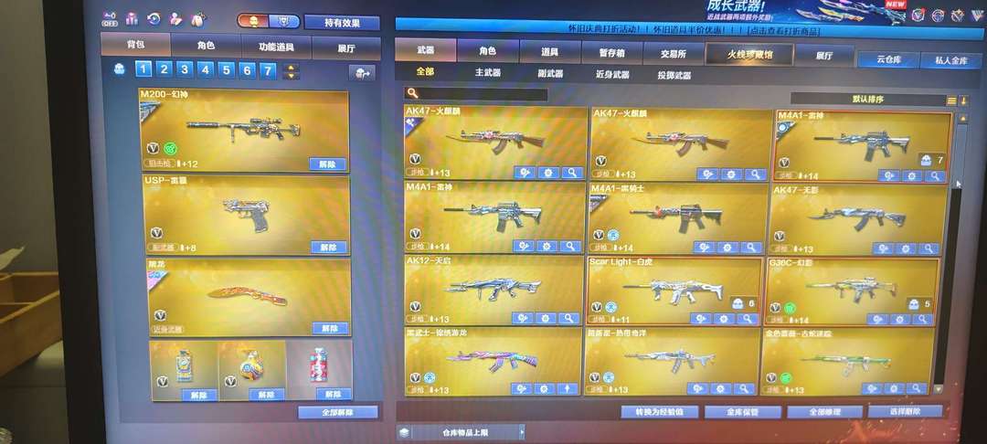装备描述:幻神音效卡白虎金色蔷薇雷神音效卡竞技荣光套装雷暴G36C幻影裁决COP雷霆三个4防角色