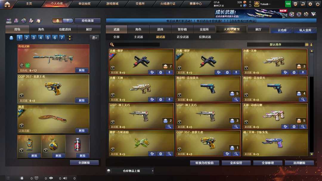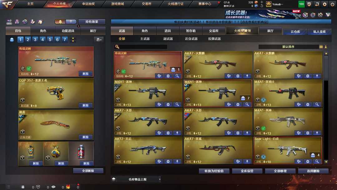 传说灵眸/幻神双皮3件套/雷神-荣耀之魄/白虎/G36C幻影/星神/2科尔特/2USP/1COP/鹰