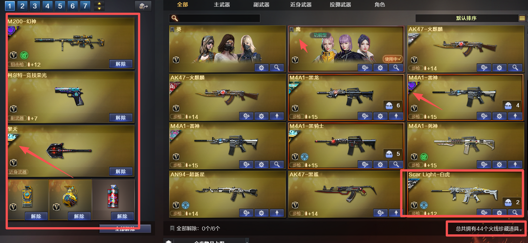 装备描述:西部⭐44V⭐幻神巅峰荣耀带卡+柯尔特+冠军之击⭐白虎白鲨皮⭐王者蔷薇⭐鹰⭐动感闪耀套⭐生化