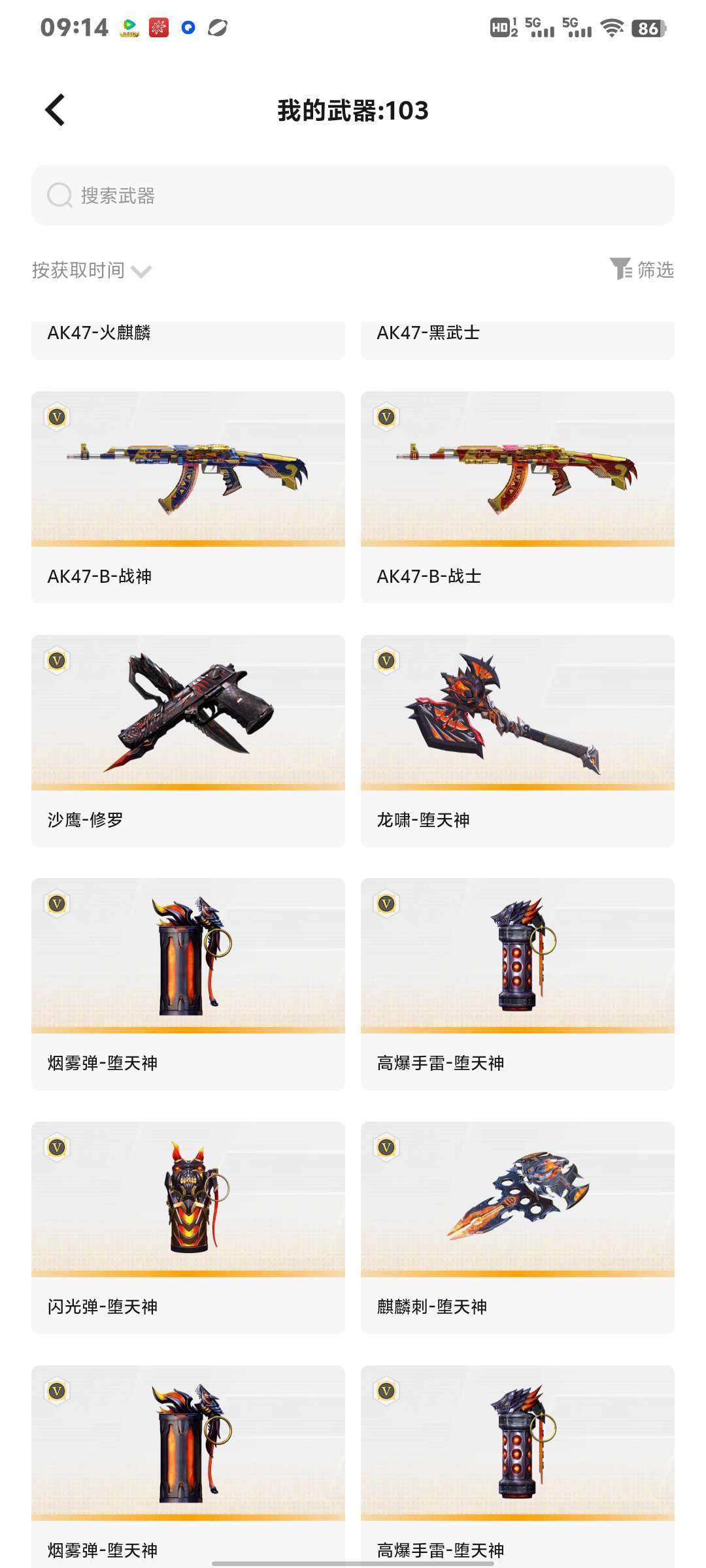 装备描述:100v,幻神,星神,王者貂蝉,金色小号,6烈,没白虎和g36c,爆破全装,生化也可