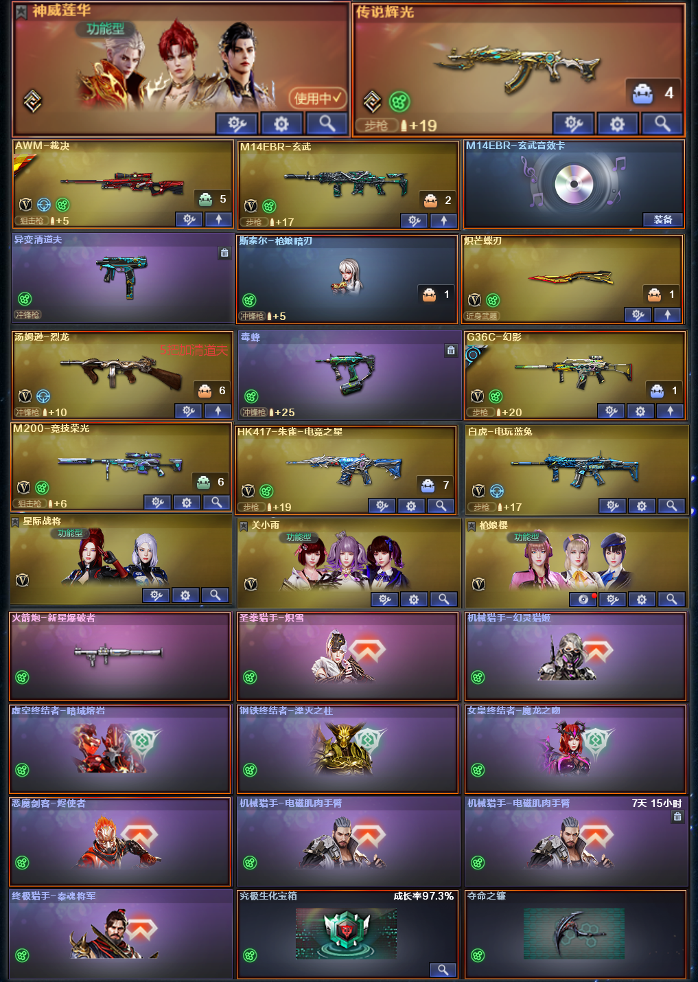 神威莲华炽芒蝶刃5烈龙枪娘暗刃清道夫毒蜂生化火箭炮炽雪女机械秦魂裁决玄武加卡白虎竞技荣光G36c