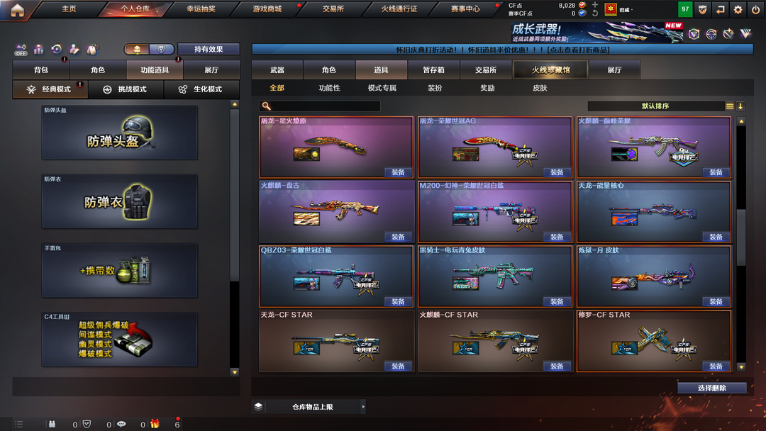 2把蝴蝶刀6盘6烈炼狱带皮肤异变清道夫巅峰荣耀幻神+巅峰荣耀火麒麟白虎之魄4字ID