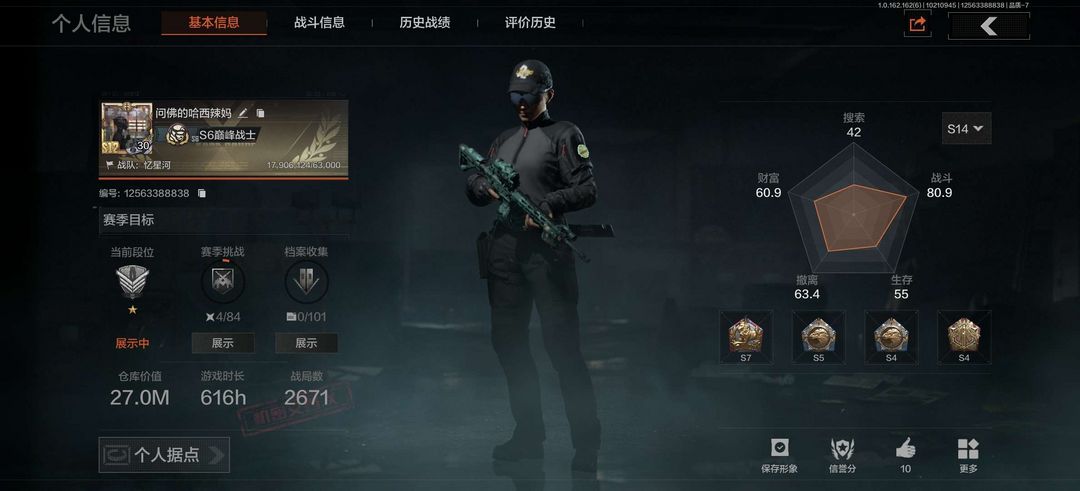 仓库价值27.8M,S1老玩家,出国三本机密文件爆率特别高,