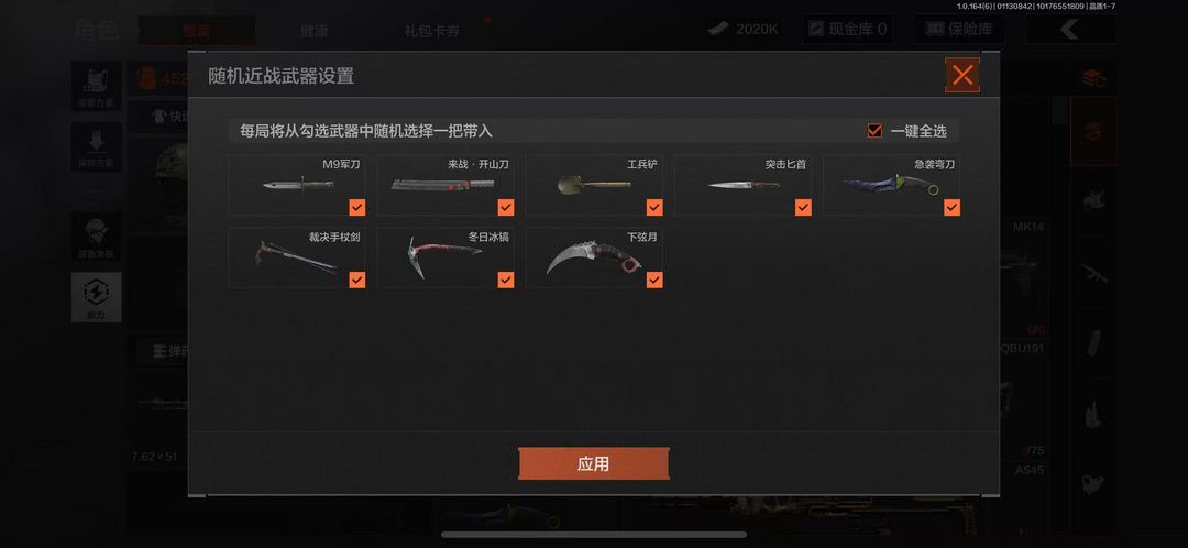 冥河、深潜行者2、10皮8刀6传说、急袭弯刀、下弦月、冬日冰镐、裁决手杖剑、突击匕首、蓝色咆哮