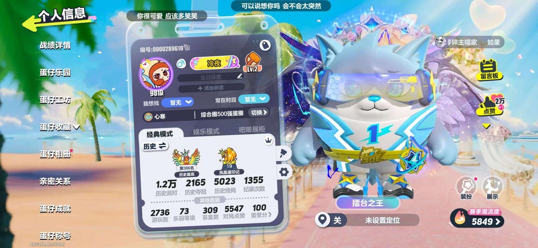 装备描述:如果不能语音,说明你下载的是租号玩极速版,网页搜索租号玩,白色的图标是标准版,极速版图标是红色的,浏览器搜租号玩官网,重新下标准版即可打开语音。 无理由投诉撤单拉黑!连续投诉撤单自动拉黑!不要故意投诉撤单,不要故意投诉撤单!! 进入游戏若卡或者画面不流畅,游戏内进入设置-界面-右边第三栏帧率选择高,就不会卡了,只首次需要调以后都不会卡。 若出现登录问题,关闭软件重新上-订单-登录即可,还是不行或者进度条卡住,点击蛋仔派对,更新完再进入软件-订单登录即可。 提醒:此账号有藏宝阁交易凭证,若使用账号进行诈骗,违禁词,或使用第三方外挂导致账号被封,将依据损失通过ip,充值记录,手机号及支付宝或其他付款记录等信息,报警并亲自配合警察根据《人民共和国刑法》第二百七十五条及二百六十六条,对违法者处三年以下有期徒刑,拘留及罚金。