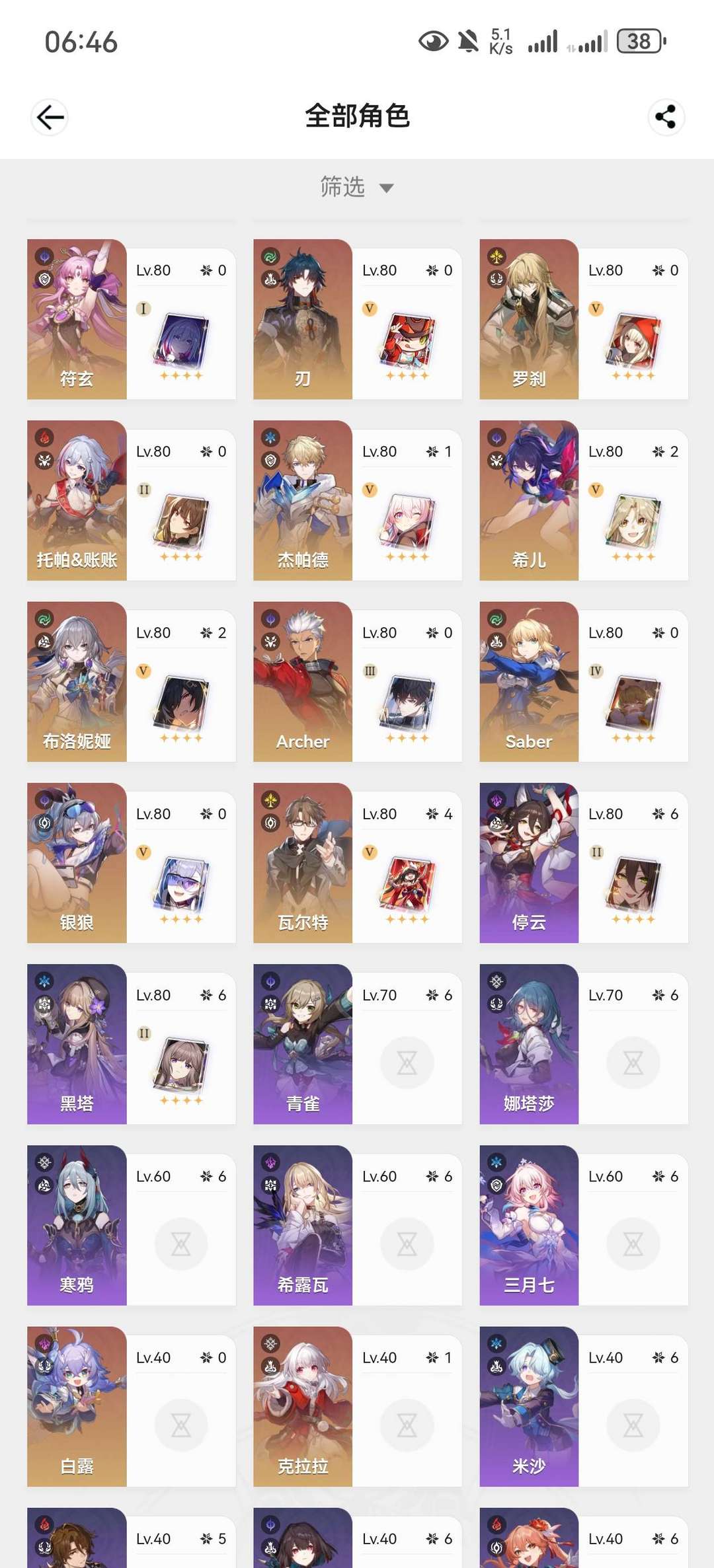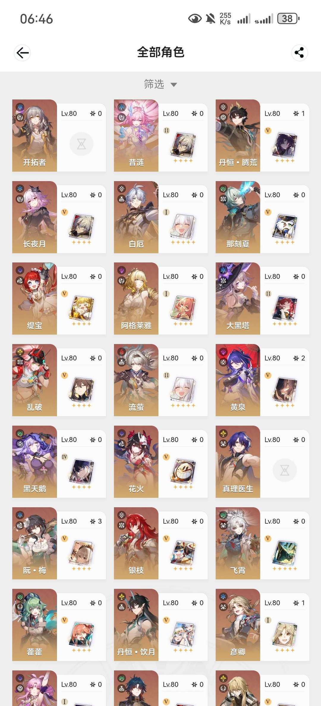 官服,五十七金,飞霄,二命希儿,刃,布罗西亚,零命彦卿