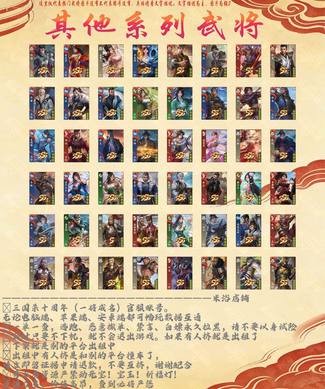 装备描述:双武庙 武皇甫嵩 武陆逊(传) 威张辽 谋司马懿(至臻动)刘晔(至臻动)神张飞 神典韦 卢弈(限动)曹芳 夏侯徽(传)诸葛均(传)谋曹洪 谋司马师(传)诸葛京 周宣 薛灵芸(限动) 乐菜文姬 袁胤(传)庞宏 乐綝 张曼成 向宠(传)朱建平 星曹仁(传) 王濬 张璇(传)谋刘协 谋董承 谋曹爽 星法正 星袁绍(战场动)黄舞蝶 许邵(传)清河公主 吴范 张怀 孙寒华 徐荣(至臻动)曹纯 T公主 庞会 贾充 周不疑(传)胡遵 文钦 侯成 裴元绍(传)赵昂 陈式(传)