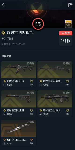 可排位2.4万库存740R点〓满级超时空卫队全套5周年公测刀〓颗秒多弥尔显卡紫金狂徒爪刀异鳞魔蛇幻影