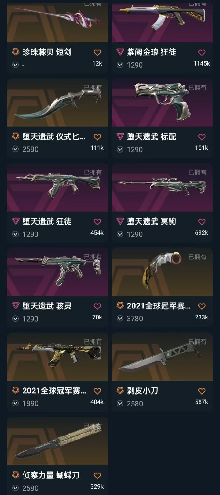 可排炸鱼拉黑❤21冠军套+堕天套❤弃王套满彩⚡剥皮刀❤蝴蝶刀❤紫金ak❤喜欢收藏