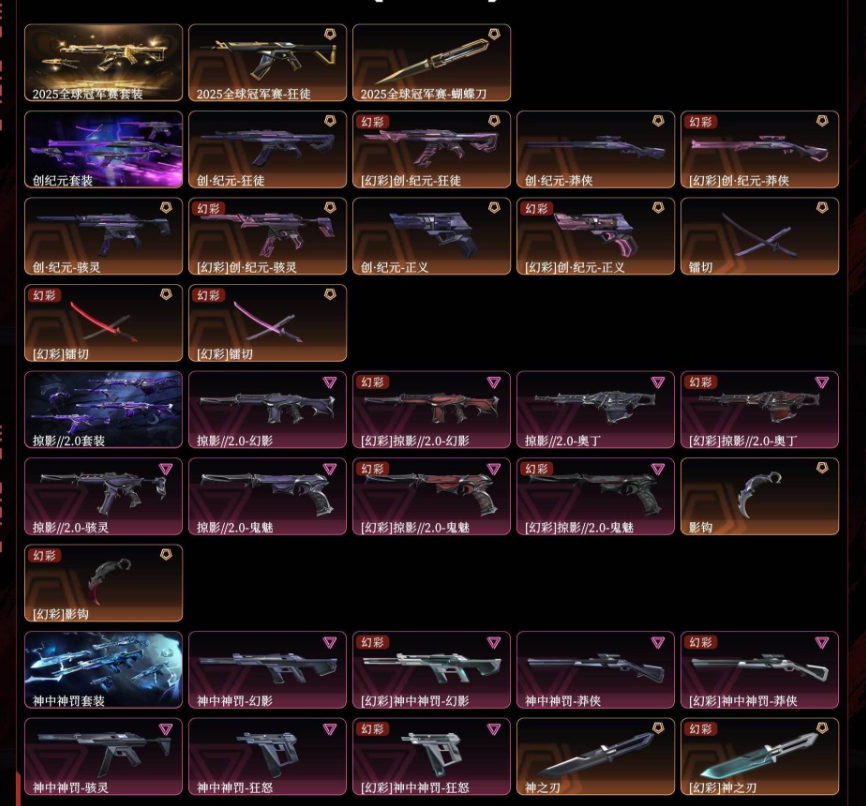 2025全球冠军创纪元掠影2.0神中神罚奇点蝴蝶VCT爪紫金狂徒盖亚狂徒天界戍卫侦查幻影千灵冥驹