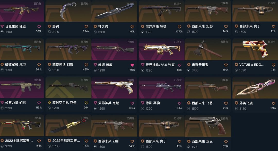 可排✅精品热门★影钩掠夺爪刀22冠军套★神之刃落英飞旋★狮子混沌狂徒★黯夜怪谈侦查西部未来★破败