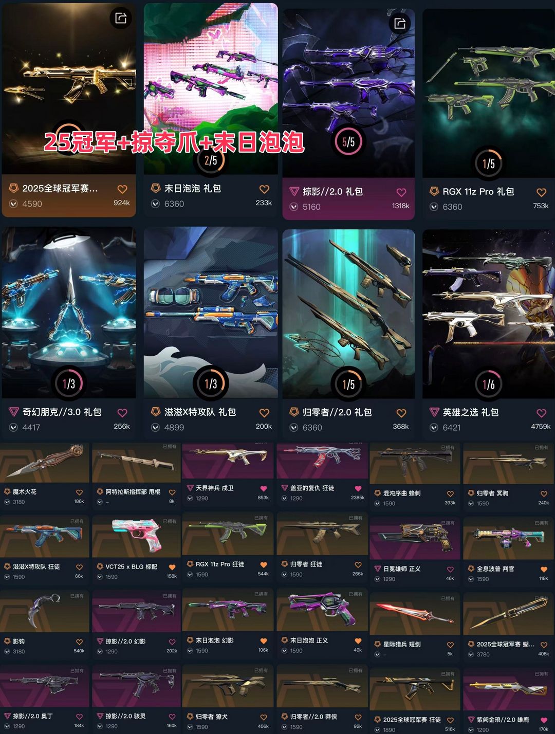 可排✅25冠军⭐末日泡泡幻影⭐魔术火花掠夺爪⭐显卡2.0⭐盖亚归零者⭐天界戍卫⭐全息波普判官