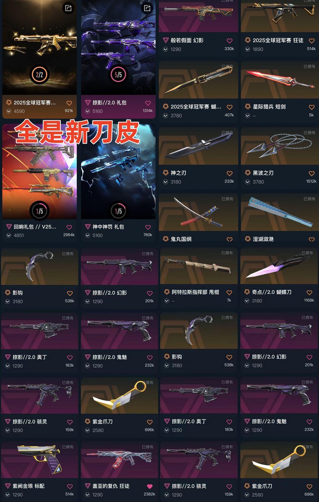 可排✅掠夺爪刀⭐25冠军⭐神罚刀⭐黑波之刃⭐侦查蝴蝶刀⭐紫金爪刀⭐鱼扇⭐盖亚狂徒⭐紫金标配