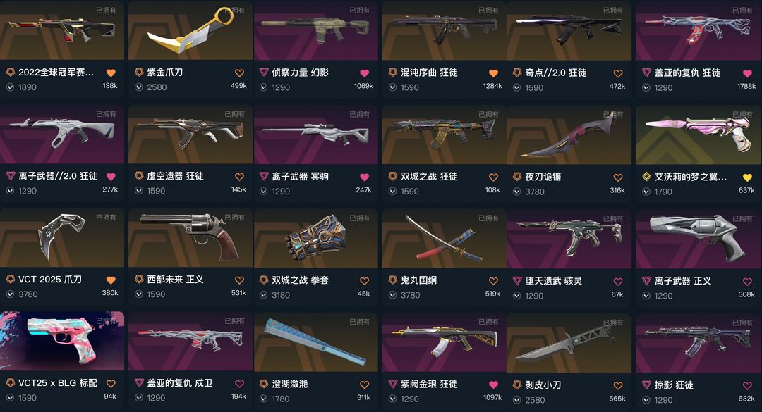 禁排✅22冠军VCT爪刀.紫金爪刀黯夜诡镰鱼扇太刀剥皮小刀.离子2.0混沌盖亚掠夺虚无紫金.猫猫鬼魅