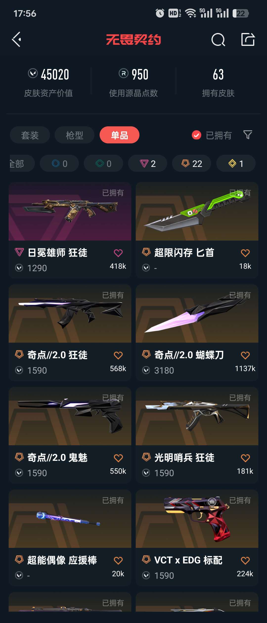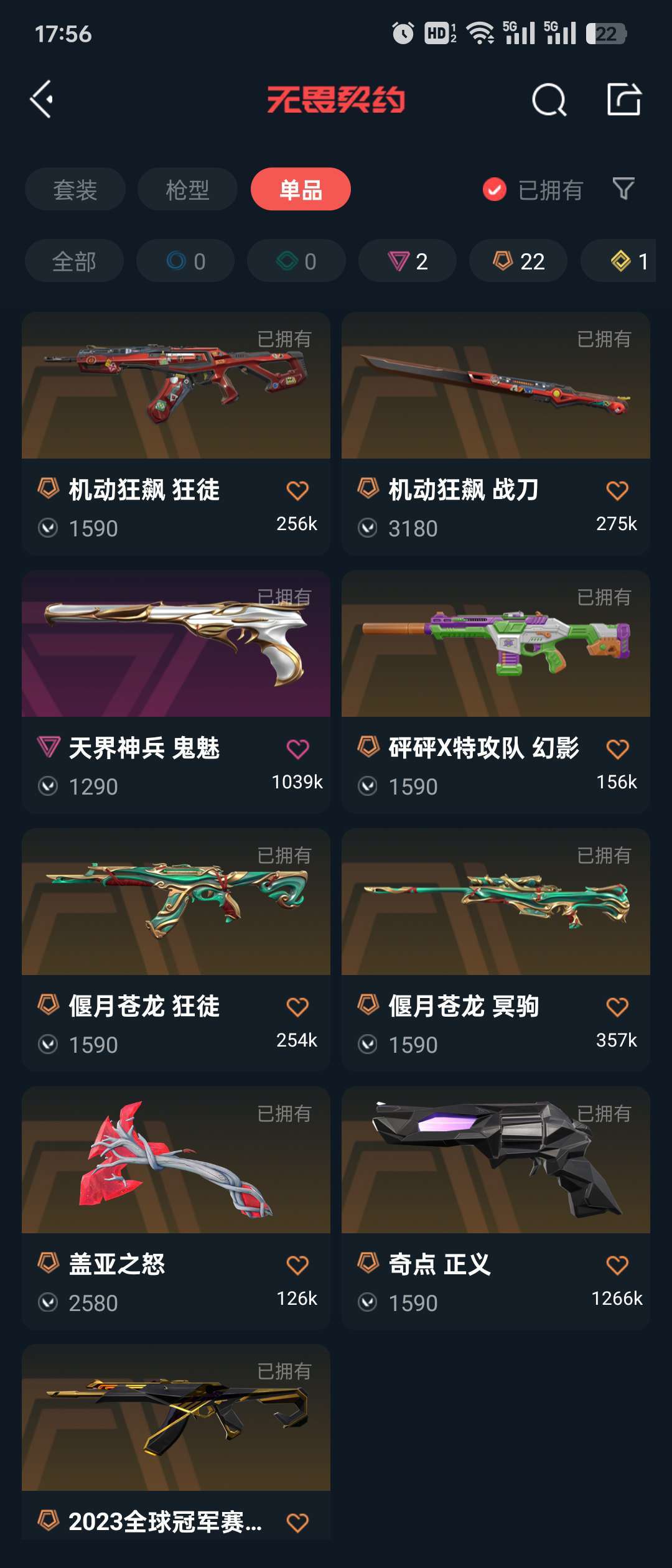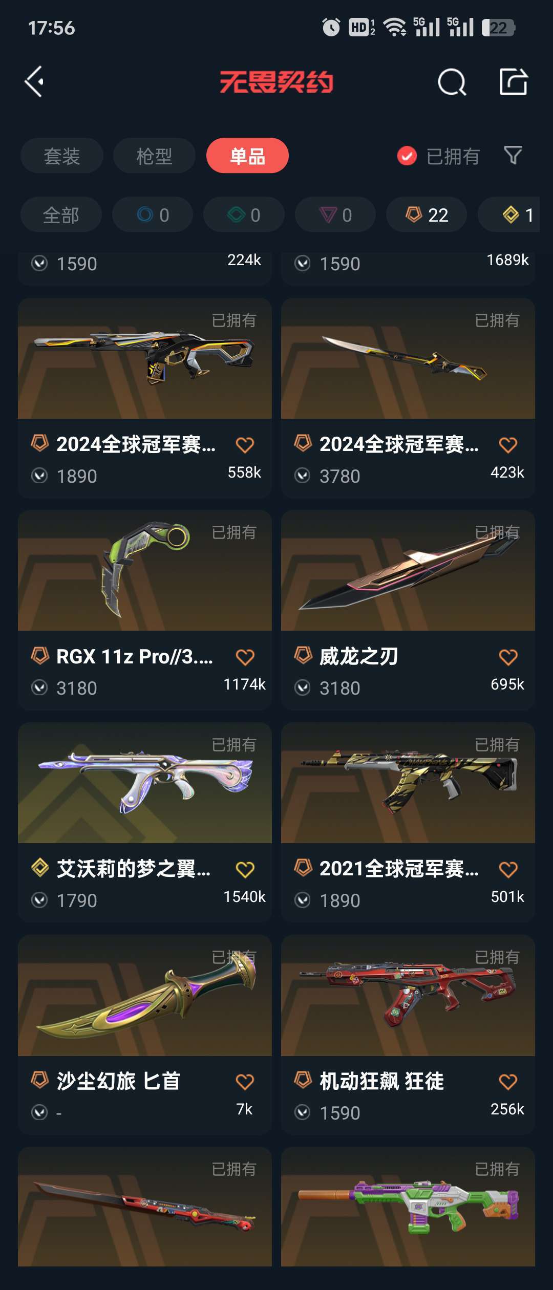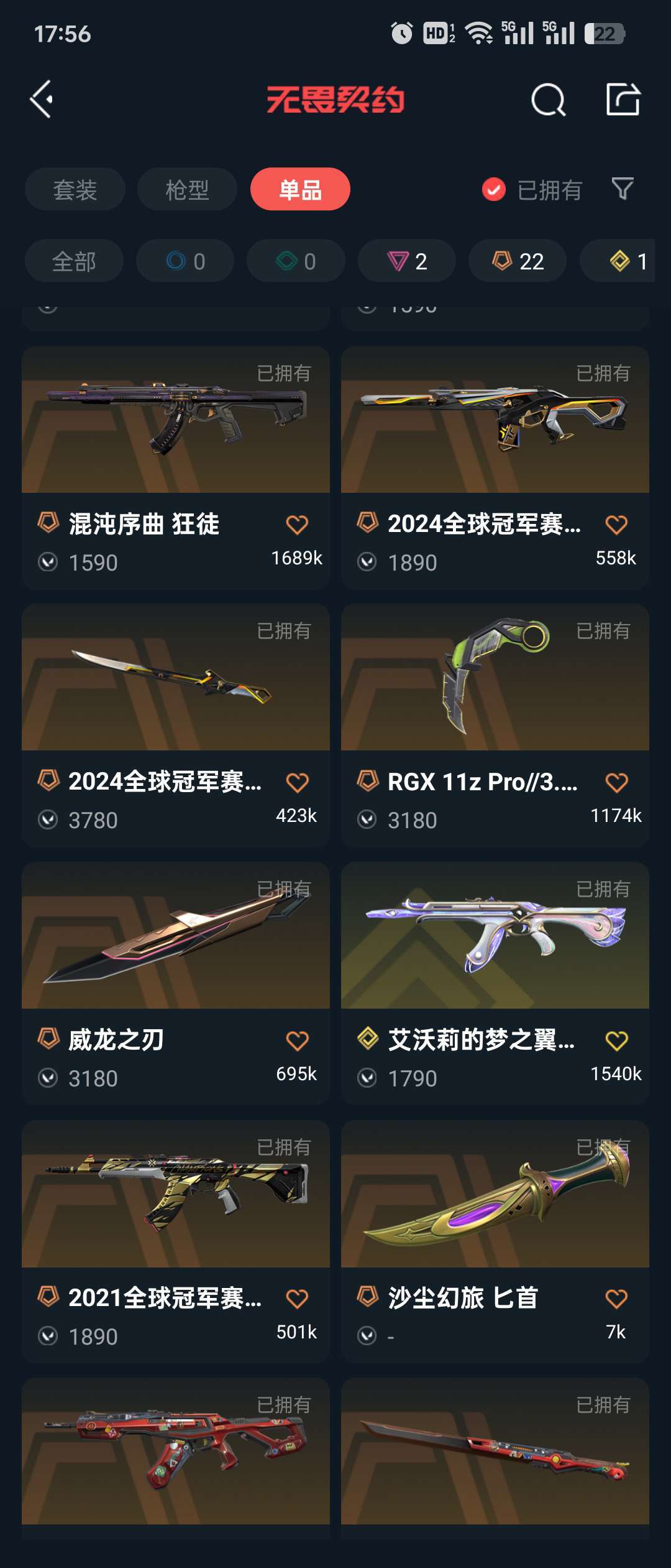 传奇数量:22