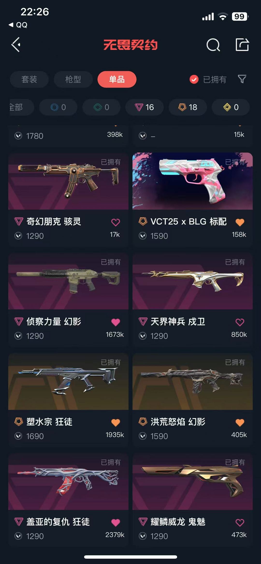 传奇数量:18