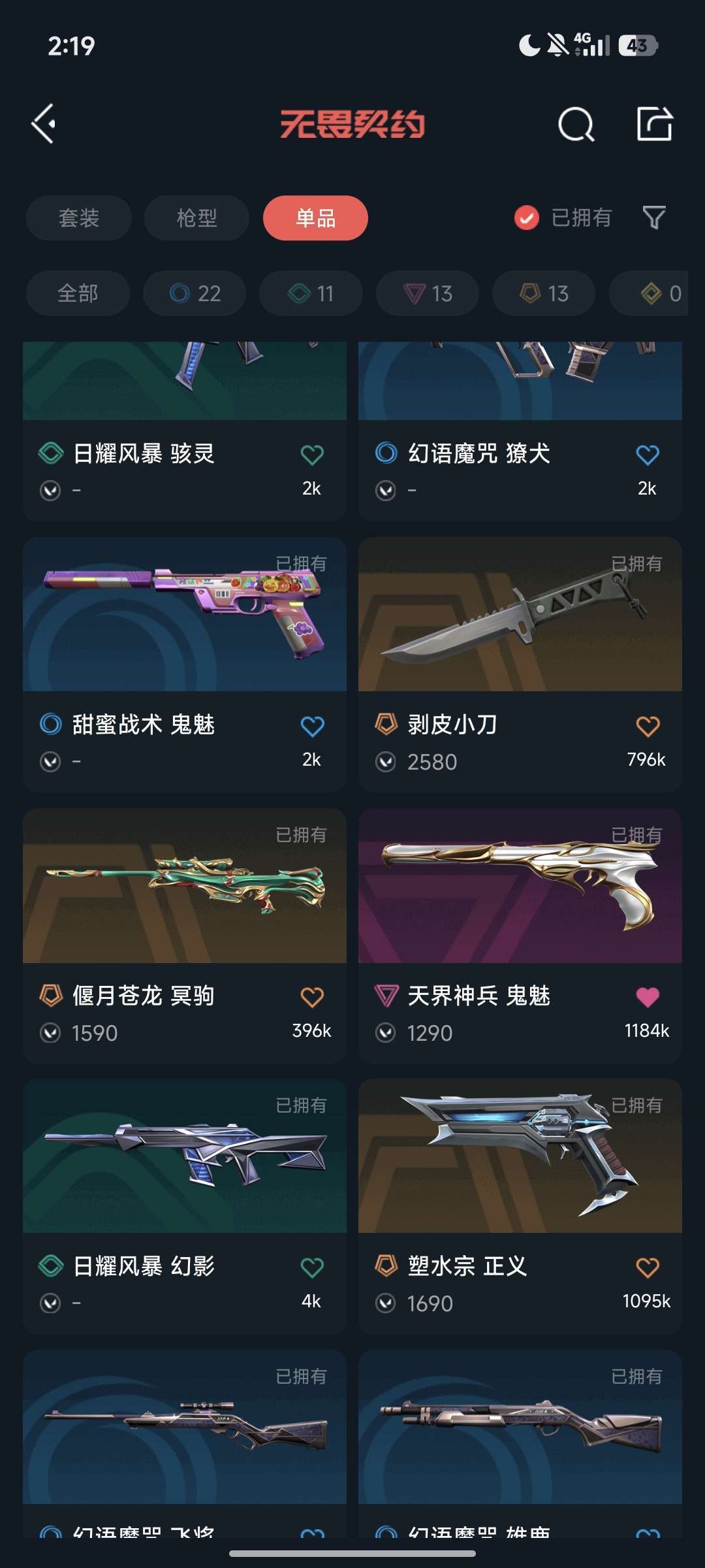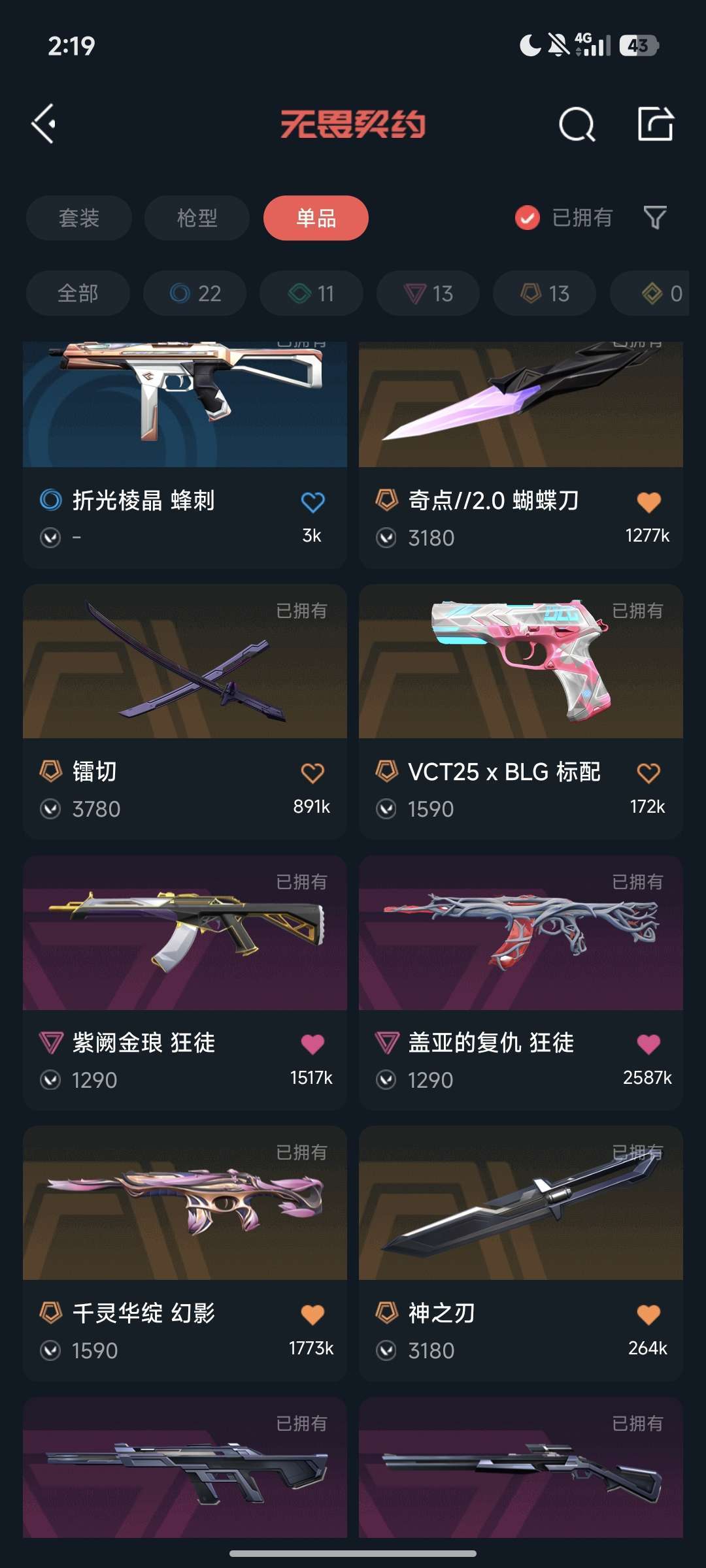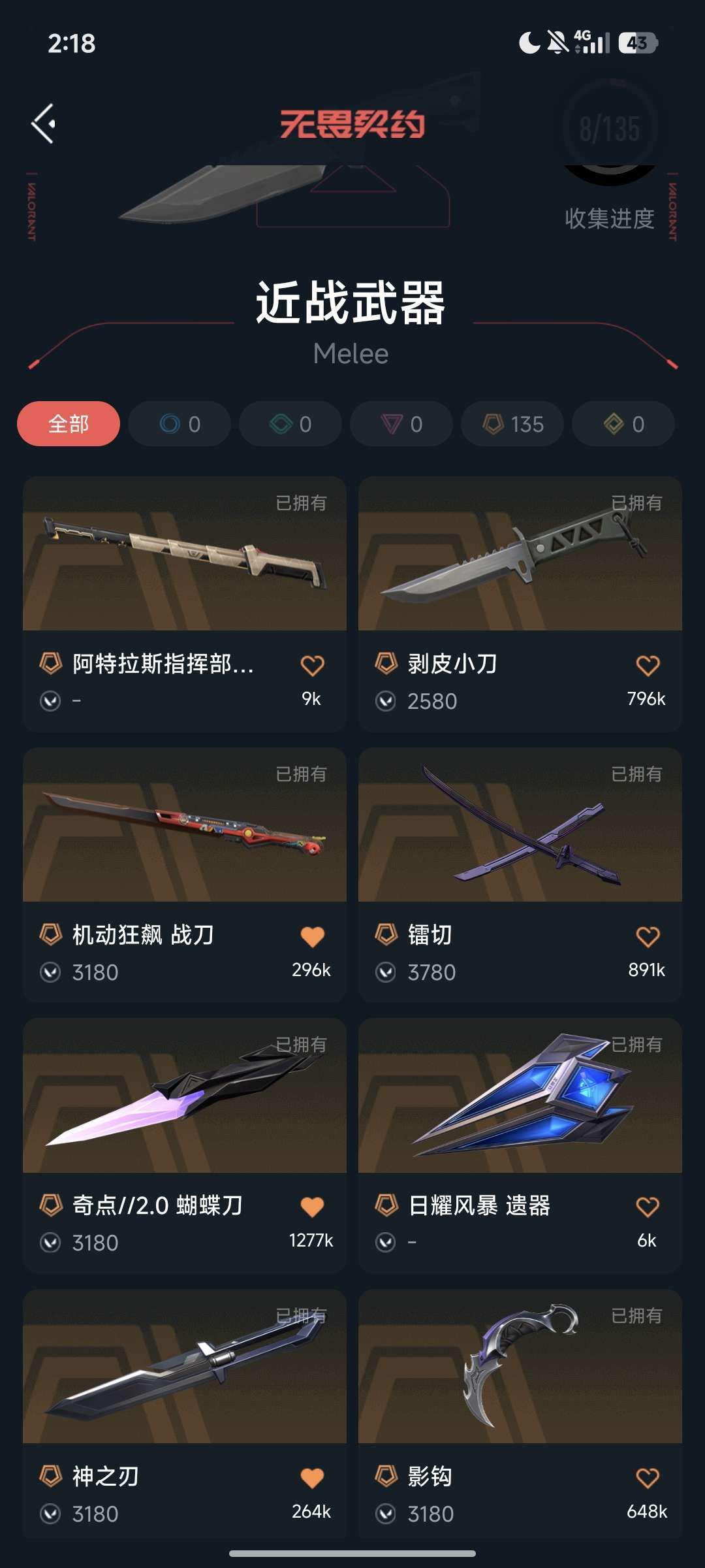 盖亚 紫金 溯水宗 掠夺 堕天遗武狂徒 剥皮小刀 机动狂飙 雷切 神之刃 奇点2.0蝴蝶刀 影钩