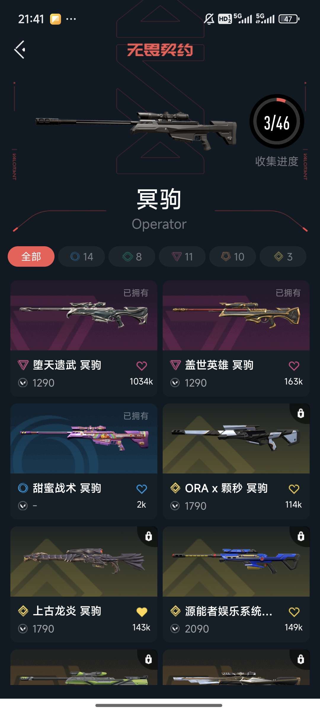 ak有盖亚 ,混沌,掠影,塑水等,刀皮有紫金,莲花,蝴蝶刀等,幻影有蛇鳞,侦查,天界等