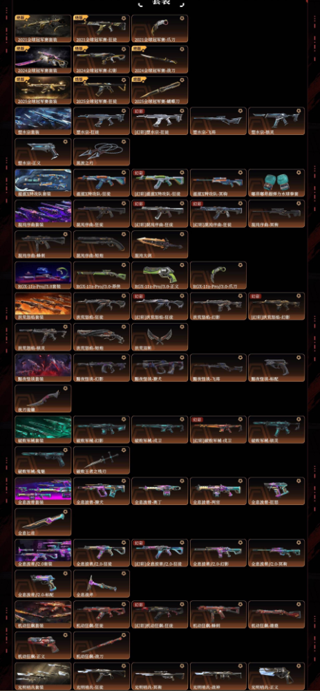 装备描述:颗秒套21冠军24冠军25冠军塑水宗滋滋特攻队混沌序曲显卡3.0洪荒怒焰破败军械全息波普机动狂飙光明哨兵光明哨兵2.0奇点2.0超时空卫队艾莉沃的梦之翼协议源能者娱乐系统掠影2.0耀鳞威龙朋克3.0般若假面2.0离子武器日冕雄狮天界神兵天界神兵2.0堕天遗武超限闪存必杀沙尘幻旅澄湖澈艳落英飞旋剥皮小刀侦察力量蝴蝶刀末日泡泡幻影2022全球幻影光荣异象狂徒显卡狂徒创纪元狂徒双城之战狂徒毁灭骑士幻影千灵华绽幻影砰砰特攻队幻影归零者狂徒归零者撩犬偃月苍龙狂徒紫阙金琅2.0幻影奇点幻影盖世英雄狂徒紫阙金琅狂徒盖亚的复仇狂徒侦察力量幻影起源狂徒冰点凝结狂徒般若假面幻影海洋之星狂徒掠影狂徒归零者冥驹偃月苍龙冥驹起源冥驹掠影冥驹西部未来奥丁砰砰特攻队奥丁奇点战神偃月苍龙判官起源雄鹿ag标配edg标配drx标配prx标配西部未来正义奇点正义盖世英雄鬼魅紫阙金琅标配盖亚的复仇鬼魅奇幻朋克鬼魅