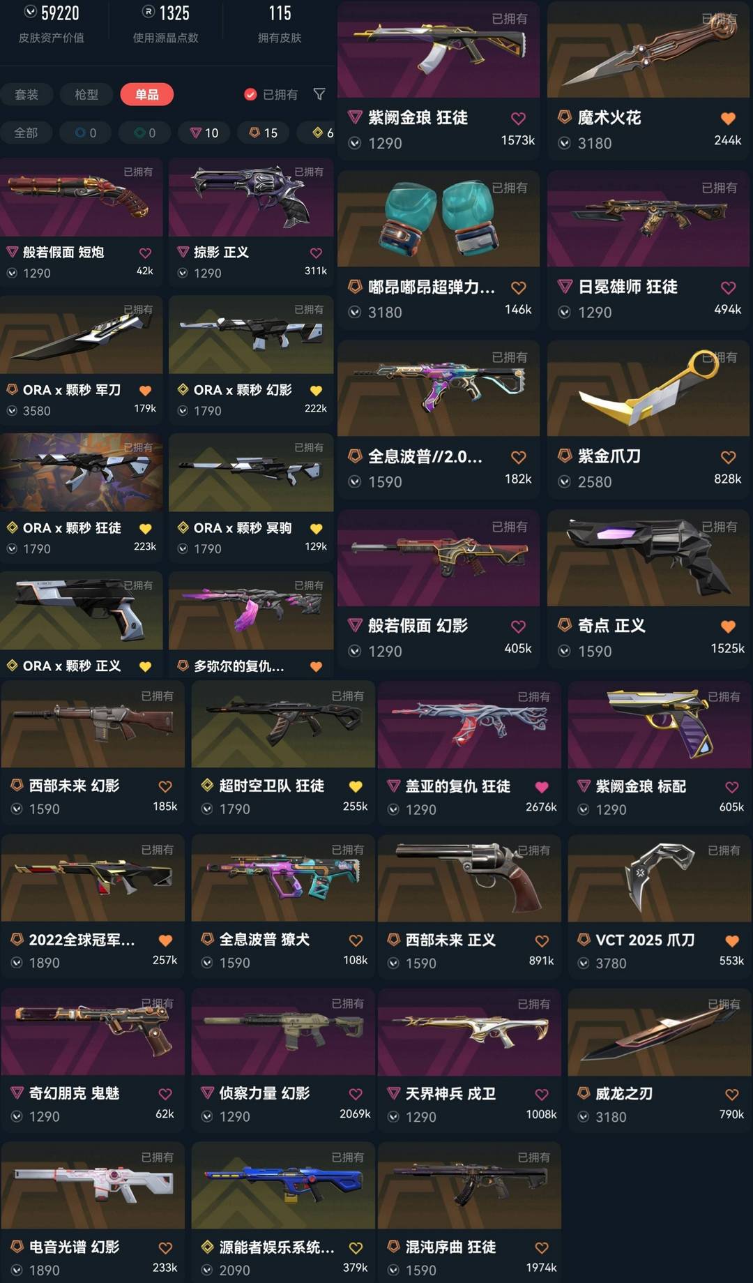 禁排✅颗秒多弥尔超时空卫队⭐VCT爪魔术火花紫金爪⭐混沌盖亚紫金⭐22冠军电音侦查幻影⭐西部未来正义