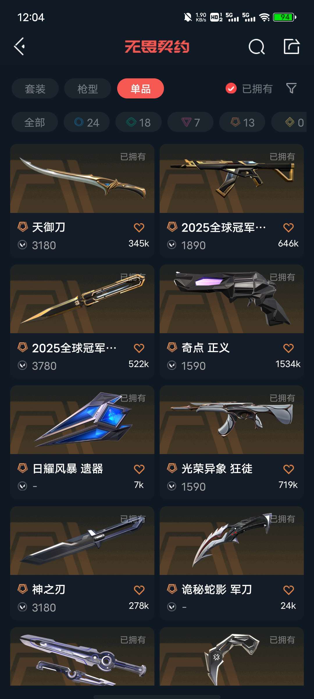 禁排❤️绝版VCT爪刀,2025冠军套,天御刀,奇点正义,光荣异象ak,盖亚狂徒应有尽有