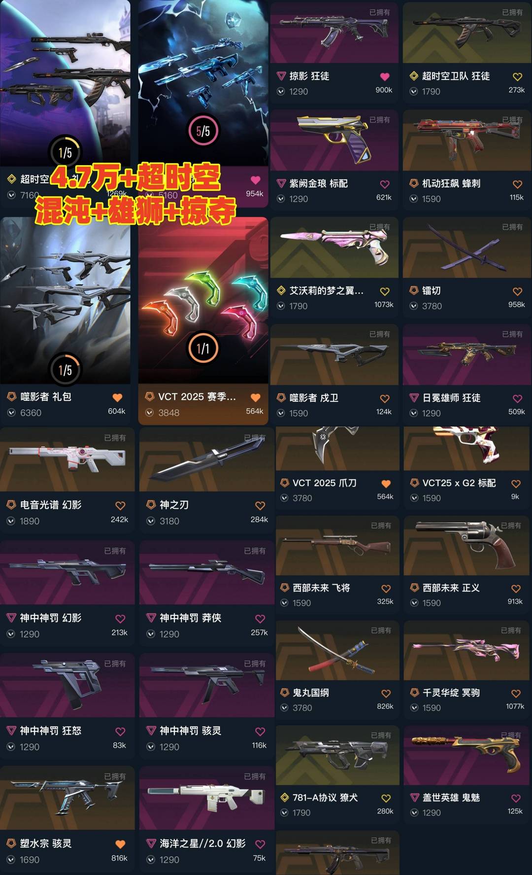 可排✅4.7万⭐掠夺超时空卫队日冕雄狮混沌⭐太刀vct爪刀神之刃镭切⭐神中神罚鱼缸⭐西部未来紫金猫猫