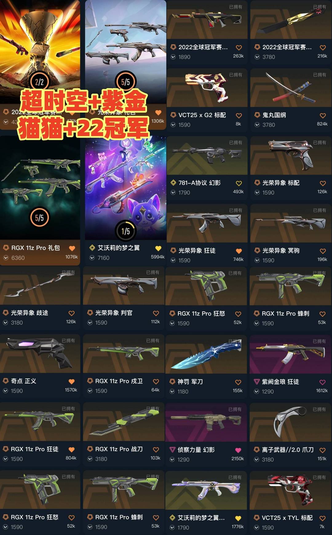 禁排✅4.5万⭐光荣异象紫金猫猫梦之翼⭐蝴蝶刀太刀离子爪神罚⭐侦察78122冠军⭐显卡套奇点vct