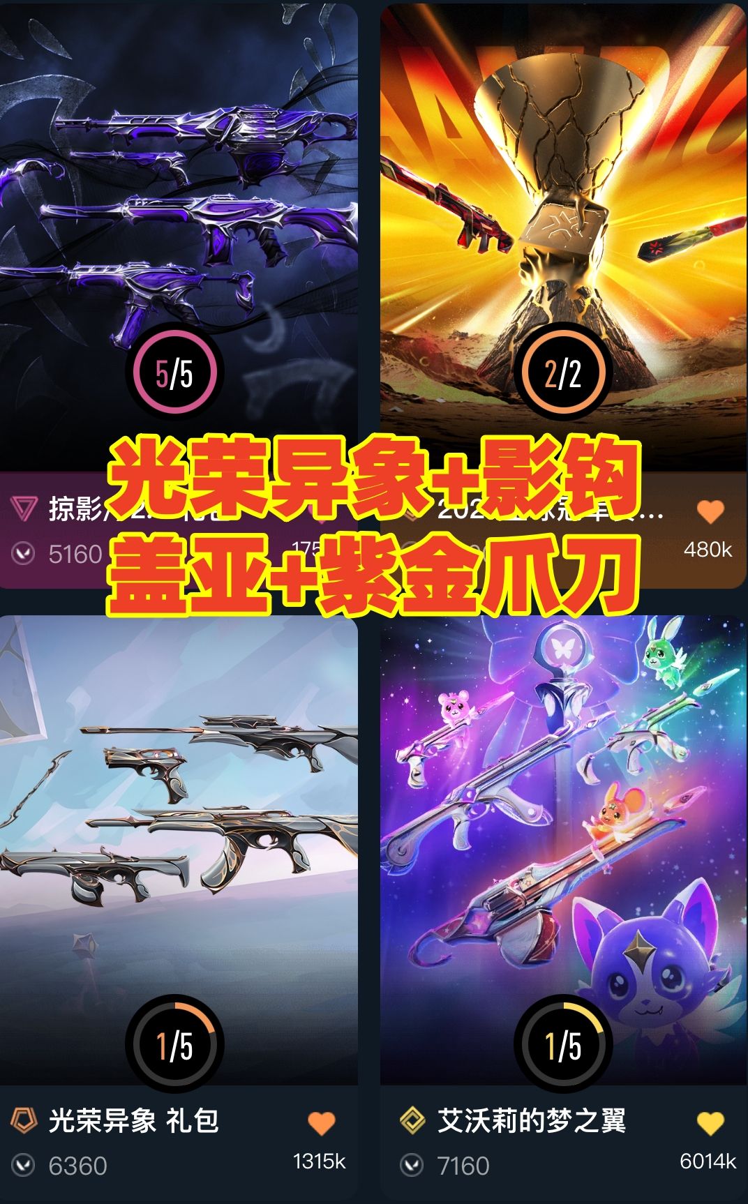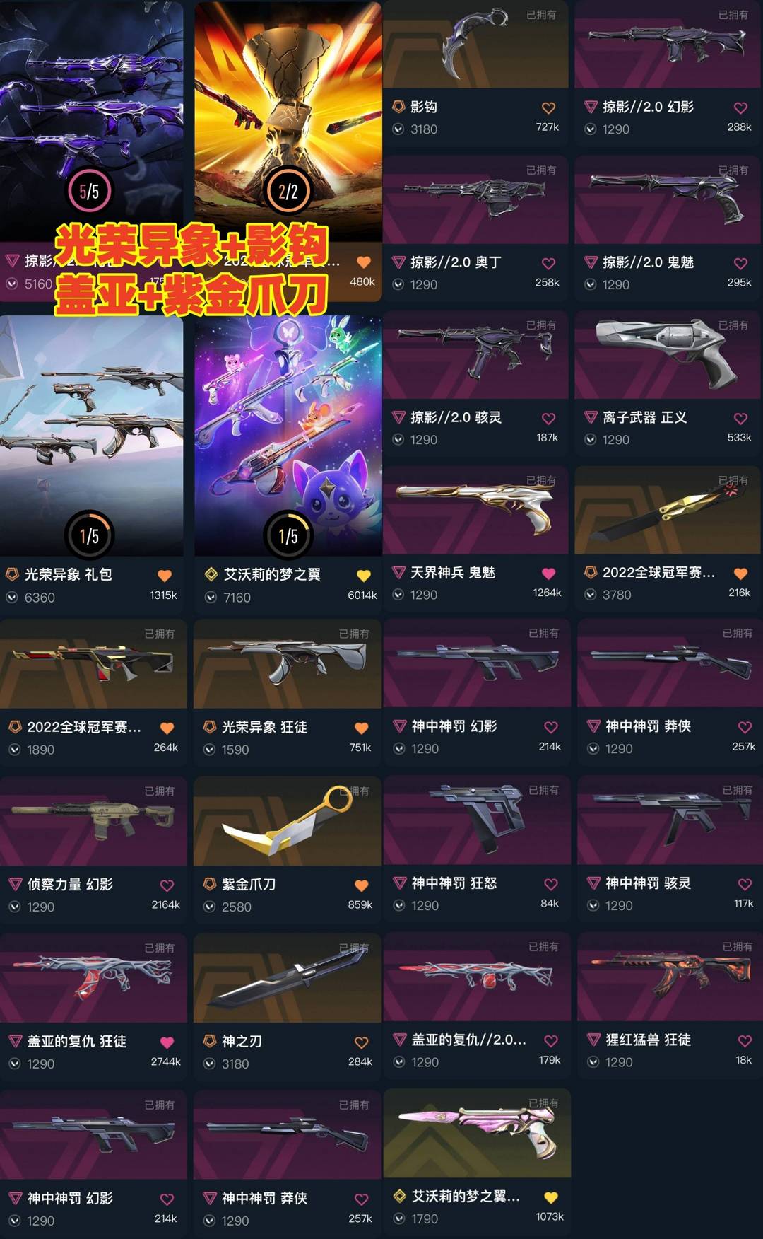 可排✅精品库存⭐光荣异象盖亚⭐神之刃紫金爪刀蝴蝶刀影钩⭐掠影2神中神罚套装⭐侦察力量22冠军天界离子