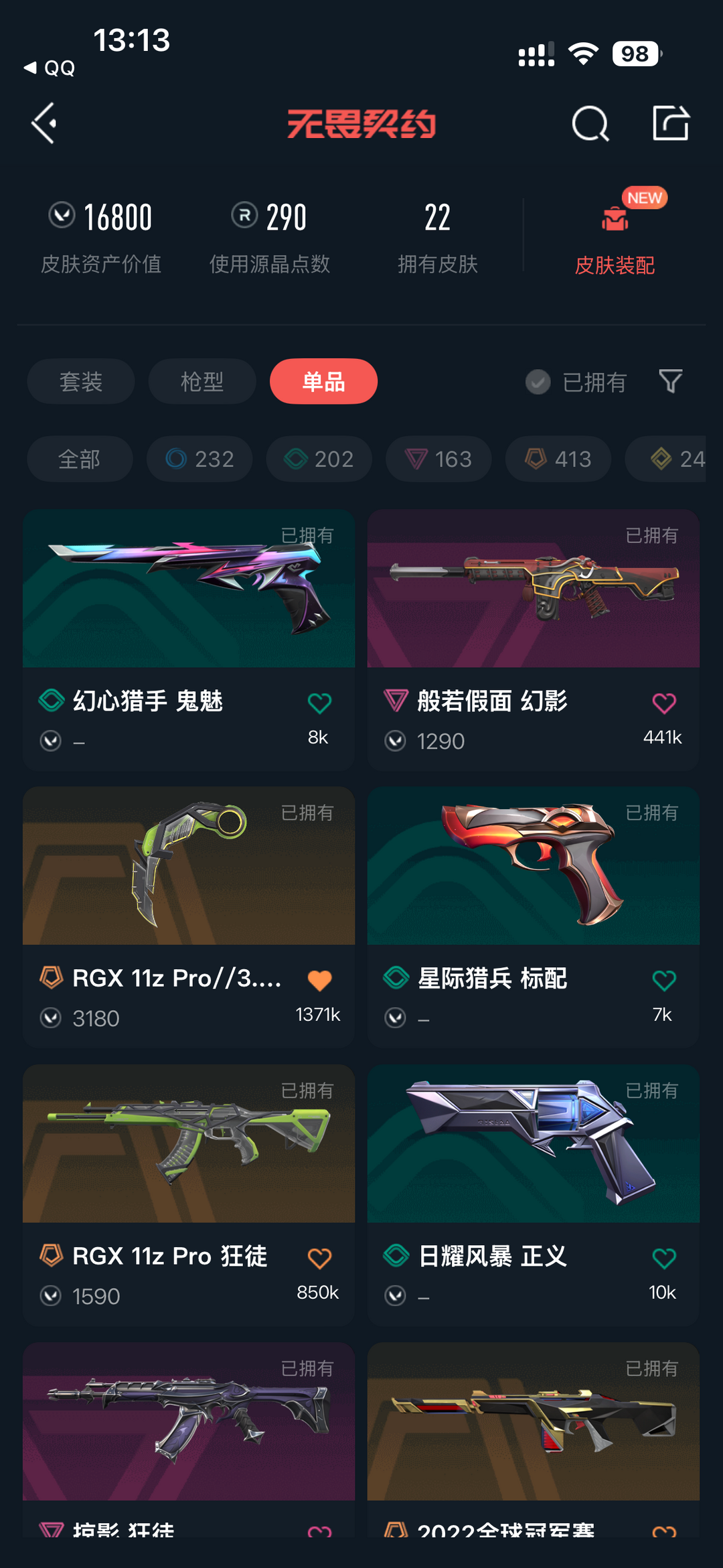 武器皮肤数量:22