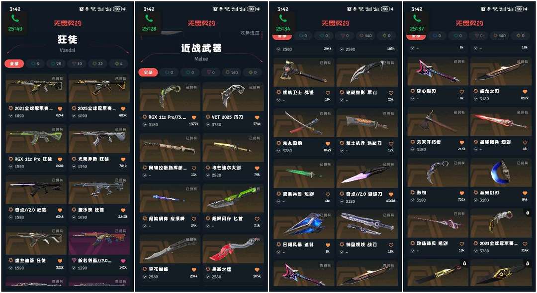 全枪型都有皮肤,大量热门皮肤,冠军套,特效刀皮等。角色21个。