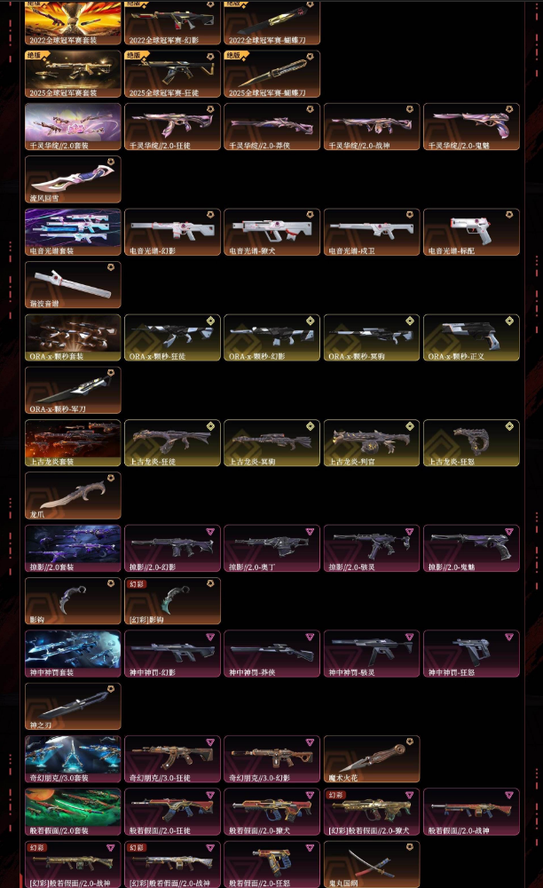 装备描述:悲悯之刃颗秒2025冠军2022冠军千灵华绽2.0电音光谱上古龙炎掠影2.0朋克3.0神中神罚般若假面2.0紫金爪刀多弥尔的复仇狂徒创纪元狂徒混沌序曲狂徒双城之战狂徒塑水宗狂徒奇点幻影艾莉沃的梦之翼狂徒离子武器2.0狂徒异鳞魔蛇幻影盖亚的复仇狂徒侦察力量幻影海洋之星狂徒日冕雄师狂徒归零者2.0莽侠堕天遗武冥驹毁灭骑士奥丁末日泡泡蜂刺侦察力量骇灵blg标配混沌序曲短炮塑水宗正义超时空卫队鬼魅灵魂冲击鬼魅