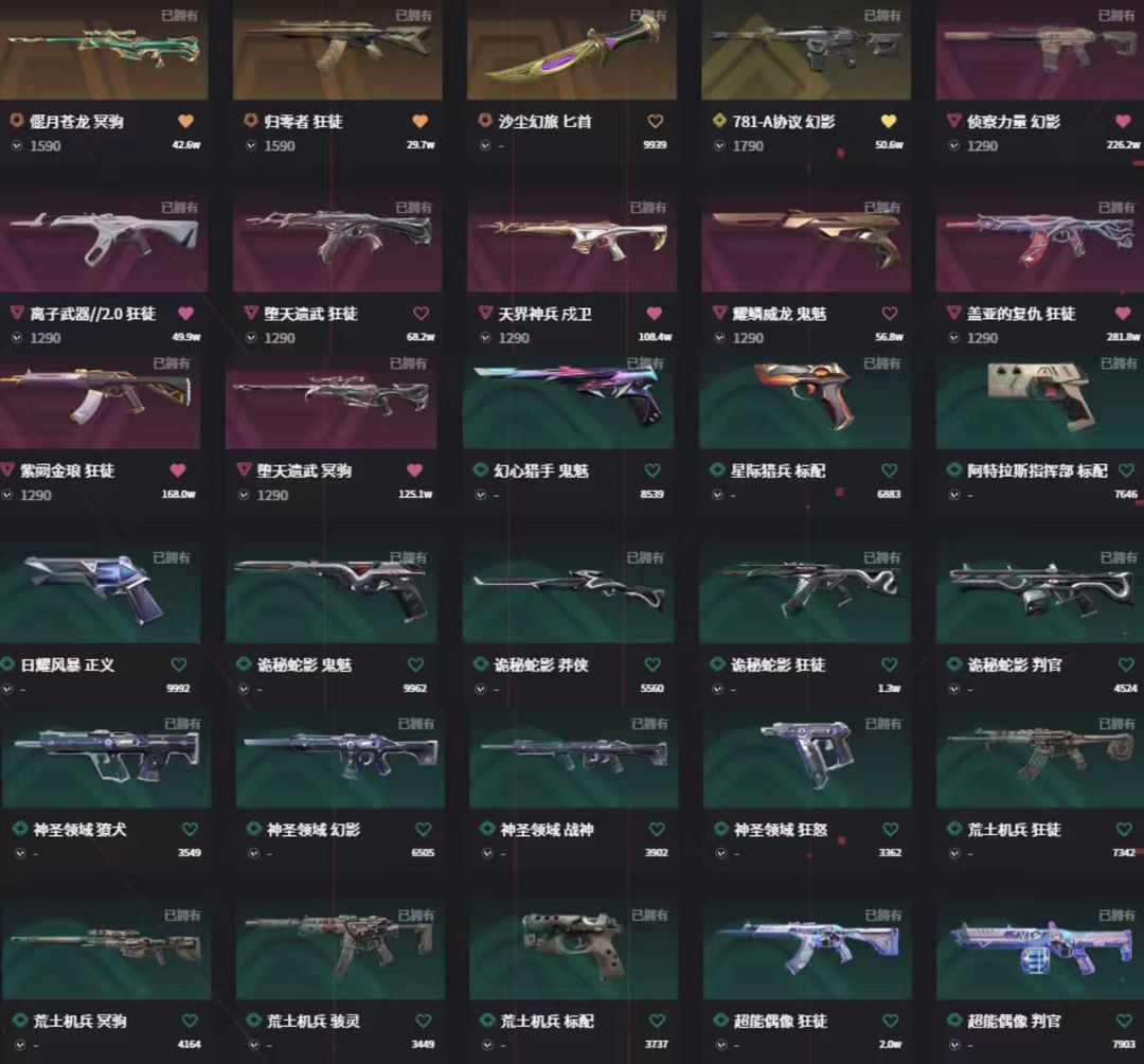 8万库vct篆刀黯夜套✨盖亚弃王归零离子塑水紫金双城ak✨781流脓侦察m4✨弃王青龙冥狙显卡莽侠