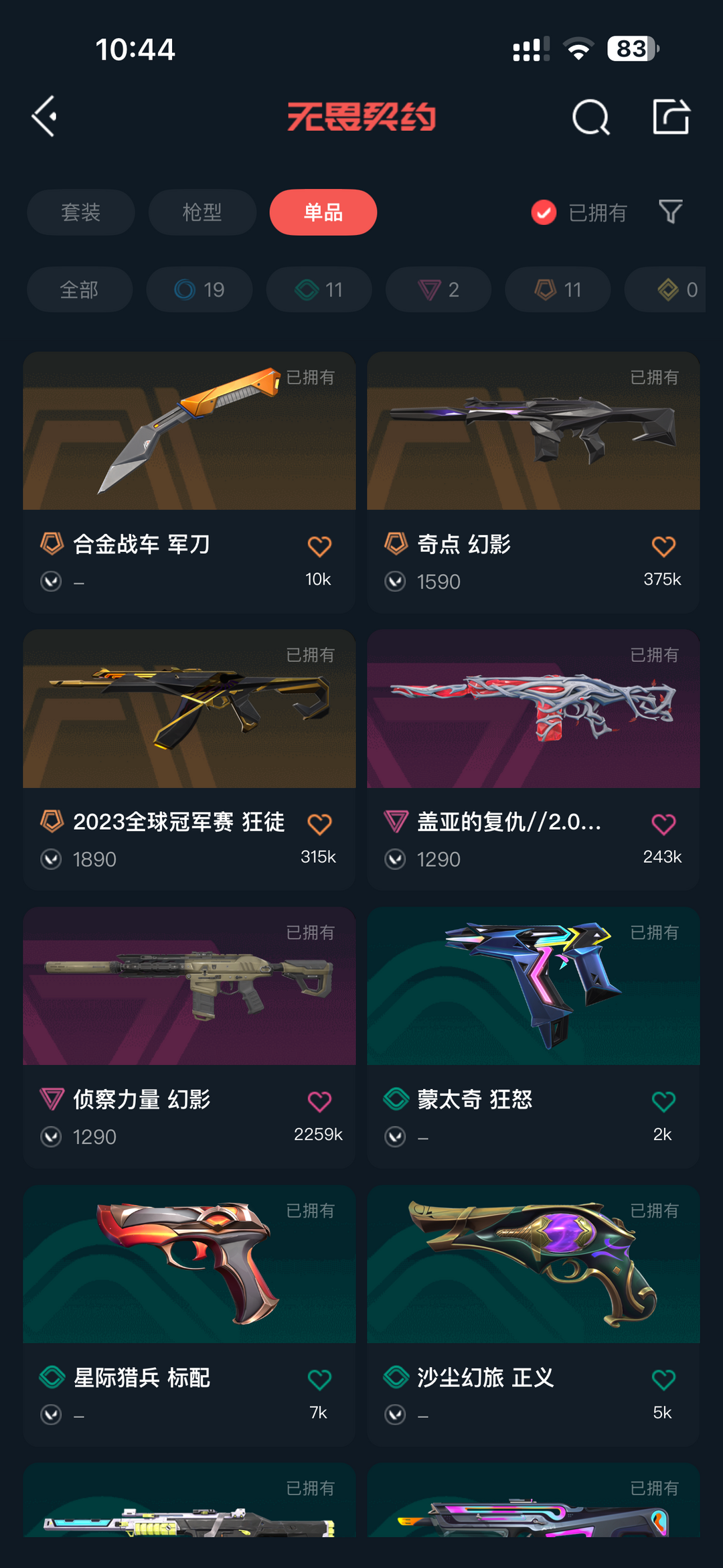 武器皮肤数量:43