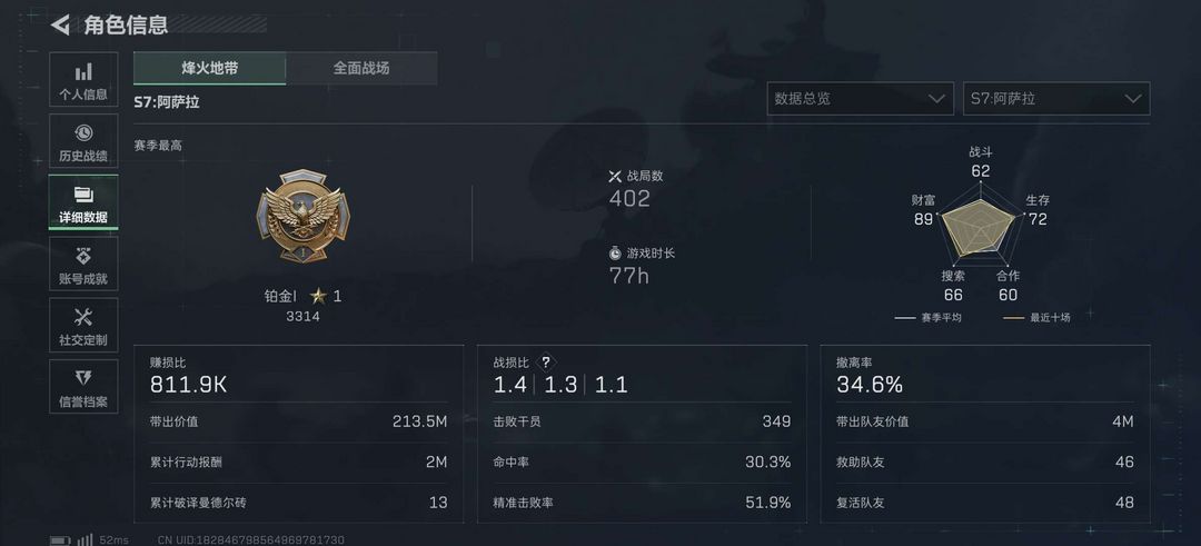 千万哈夫币 5000多万哈夫币可用,高体力低kd,爆率高,猛攻护航带妹首选,送6套和m14