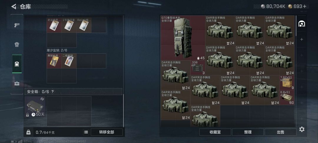 装备描述:6格安全箱,7级体力,6级负重,带老板首选