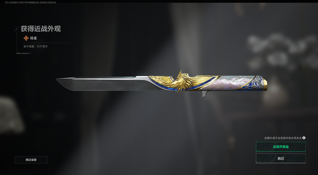 皮肤号 ⭐暗星⭐信条⭐北极星⭐维什戴尔⭐蚀金玫瑰⭐2红皮2刀皮⭐低kd7传说30史诗