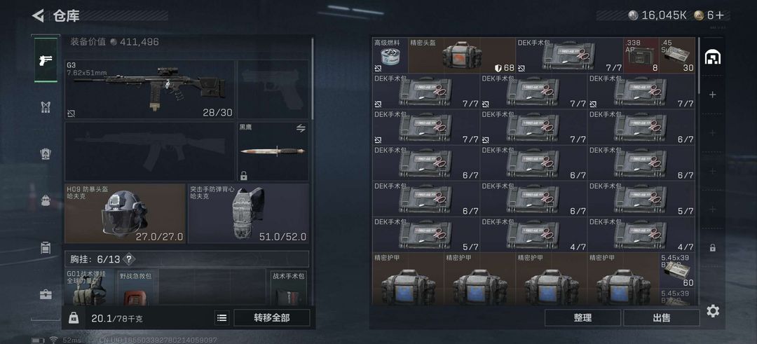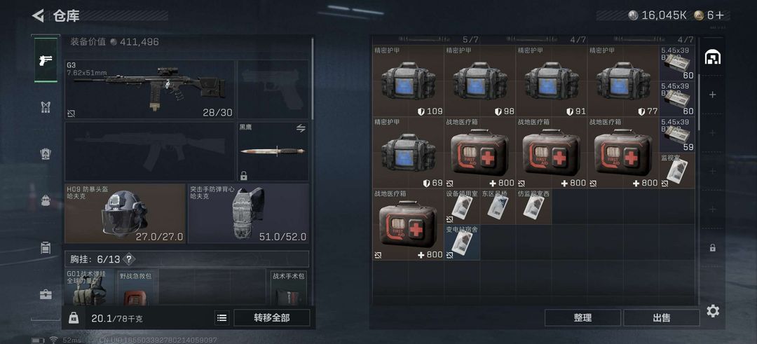 皮肤号 哈弗币1600w,保险格数2x2,仓库8颗AW子弹,金甲修手术包,房卡