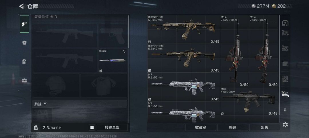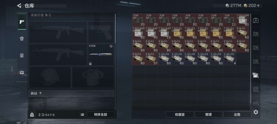 装备描述:仓库十多套六甲,151AWM,19组红蛋,交易行卡了二三十套五甲,十几把满改枪。禁止利用账号进行开挂、使用辅助违规软件诈骗等违规操作及删除好友等毁号行为,追责到底!