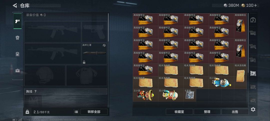 装备描述:收藏室不可动,红色子弹和高级咖啡豆不可用。 禁止利用账号进行开挂、使用辅助违规软件诈骗等违规操作。