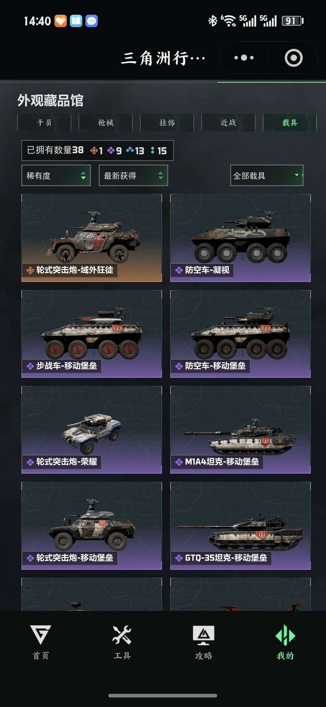 载具皮肤数量:38