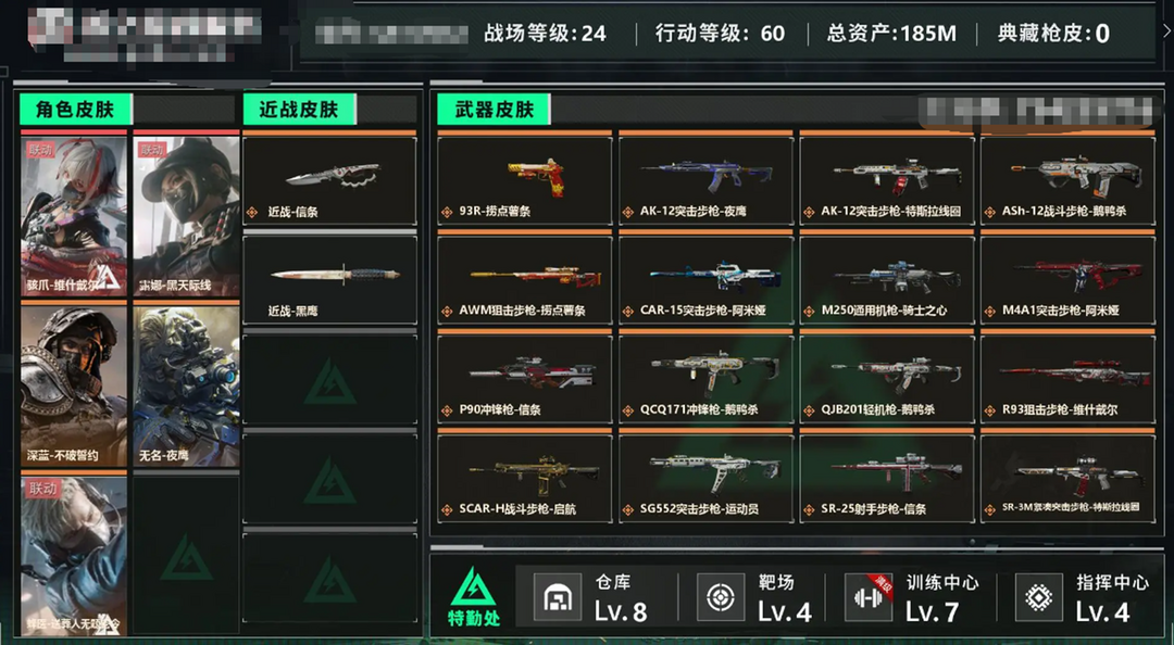 千万哈夫币 近战2-信条/枪皮数量200,威龙-凌霄戍卫/骇爪-维什戴尔/露娜-黑天际线/深蓝-不破